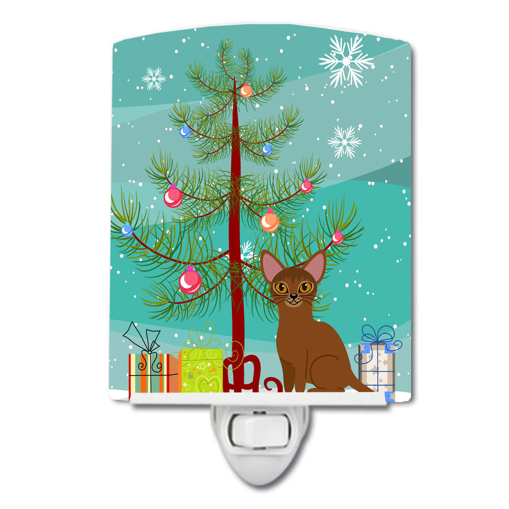 Abyssinian Cat Merry Christmas Tree Ceramic Night Light BB4411CNL