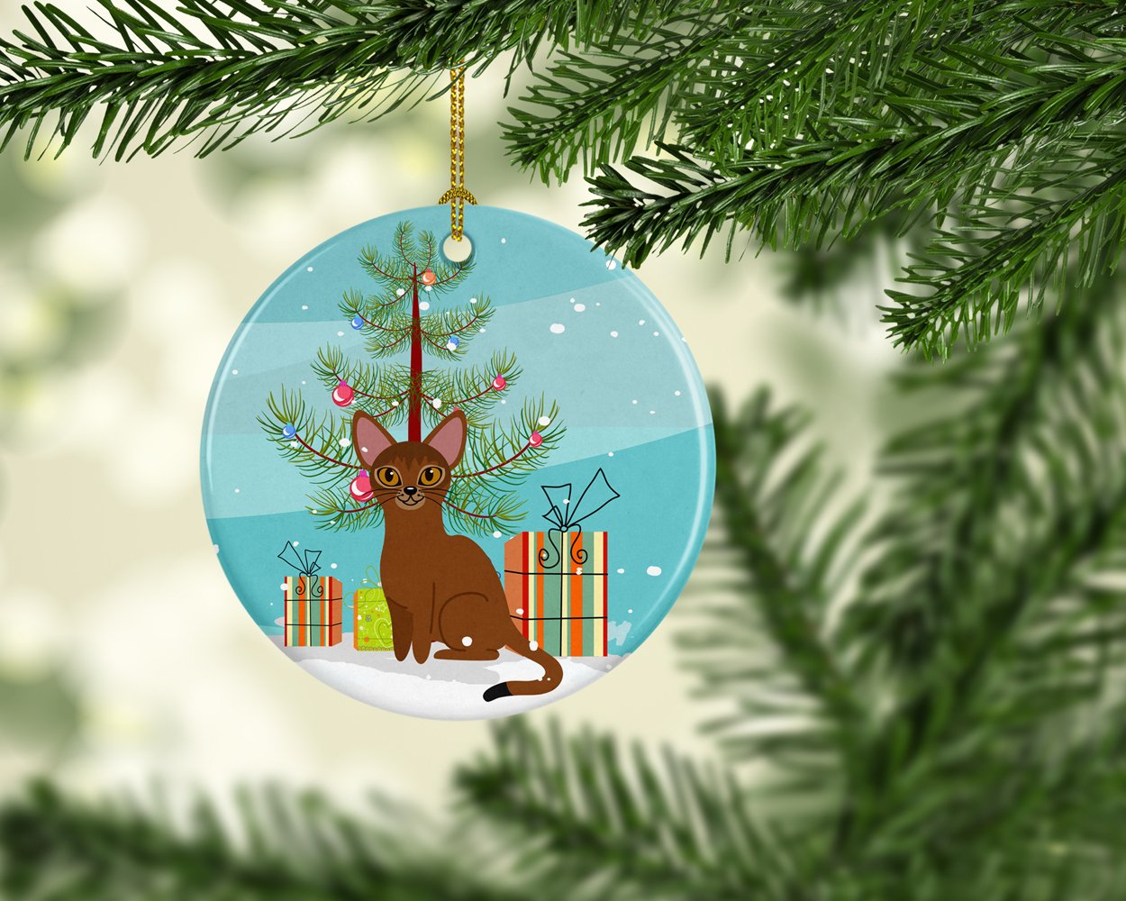 Abyssinian Cat Merry Christmas Tree Ornament - Round Ceramic Ornament – Artist-Designed Keepsake Decoration BB4411CO1