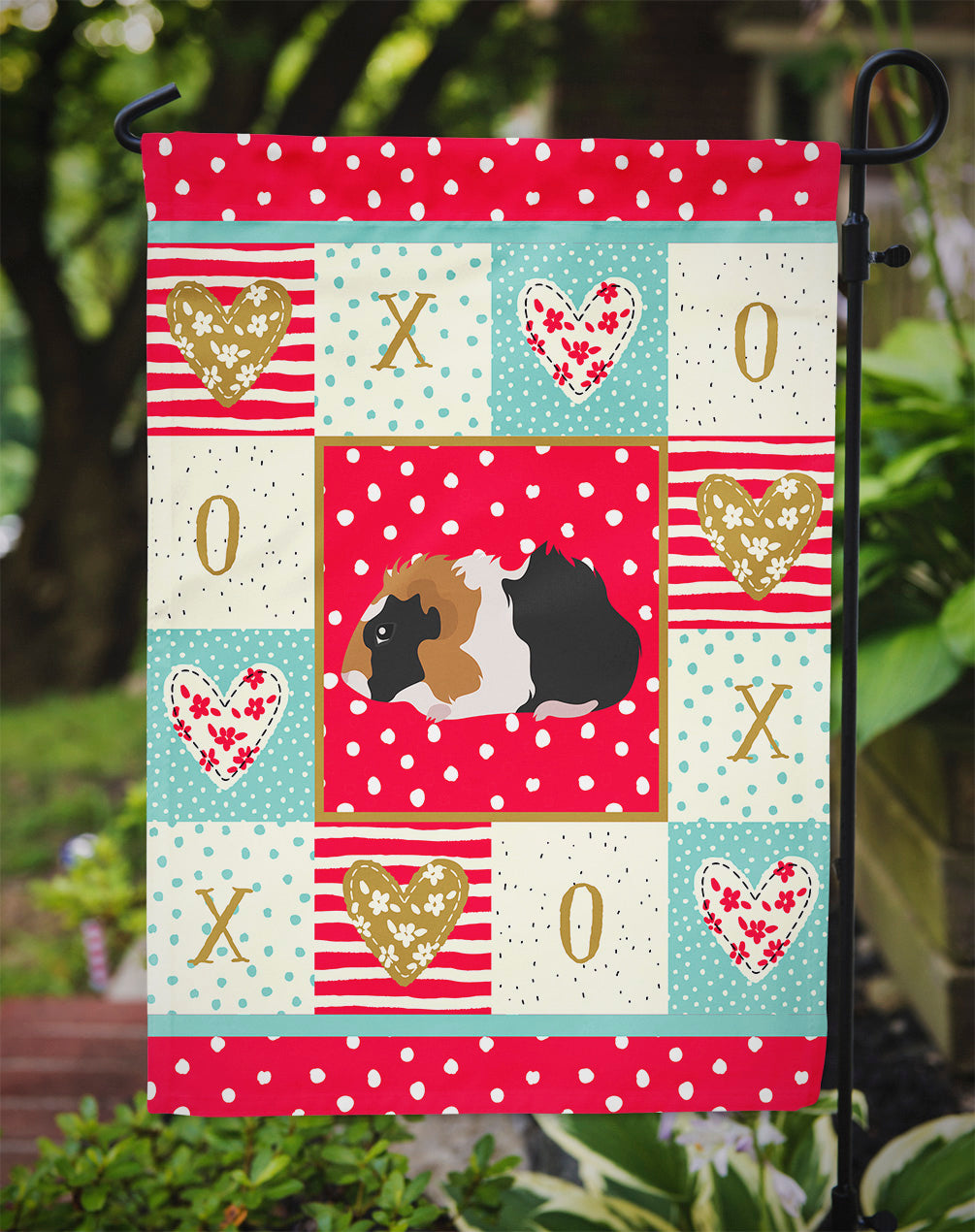 Decorate your space with our Valentine's Day Abyssinian Guinea Pig artwork on a Garden Flag. Enhance the beauty of your garden, patio, or yard with Caroline's Treasures Decorative Garden Flag, proudly made in the USA. Crafted from two pieces of thick, double-sided polyester fabric, this 2-ply garden flag is designed to withstand various weather conditions, making it water-resistant and weatherproof. Featuring correctly readable words on both sides, this garden flag offers a delightful visual experience from any angle. With its heavier weight, it stands out among other garden flags, ensuring stability and durability even in wind, rain, and snow. Measuring approximately 11 1/4 inches by 15 1/2 inches, this flag allows you to personalize your outdoor decor. It comes with a 1 1/2-inch sleeve sewn in, allowing easy attachment to any standard garden flag stand or garden size porch hanger (sold separately). Make a statement in your outdoor space with Caroline's Treasures Decorative Garden Flag, a vibrant and high-quality flag that adds color and personality to your surroundings. Proudly made in the USA, it's a symbol of quality craftsmanship and attention to detail.