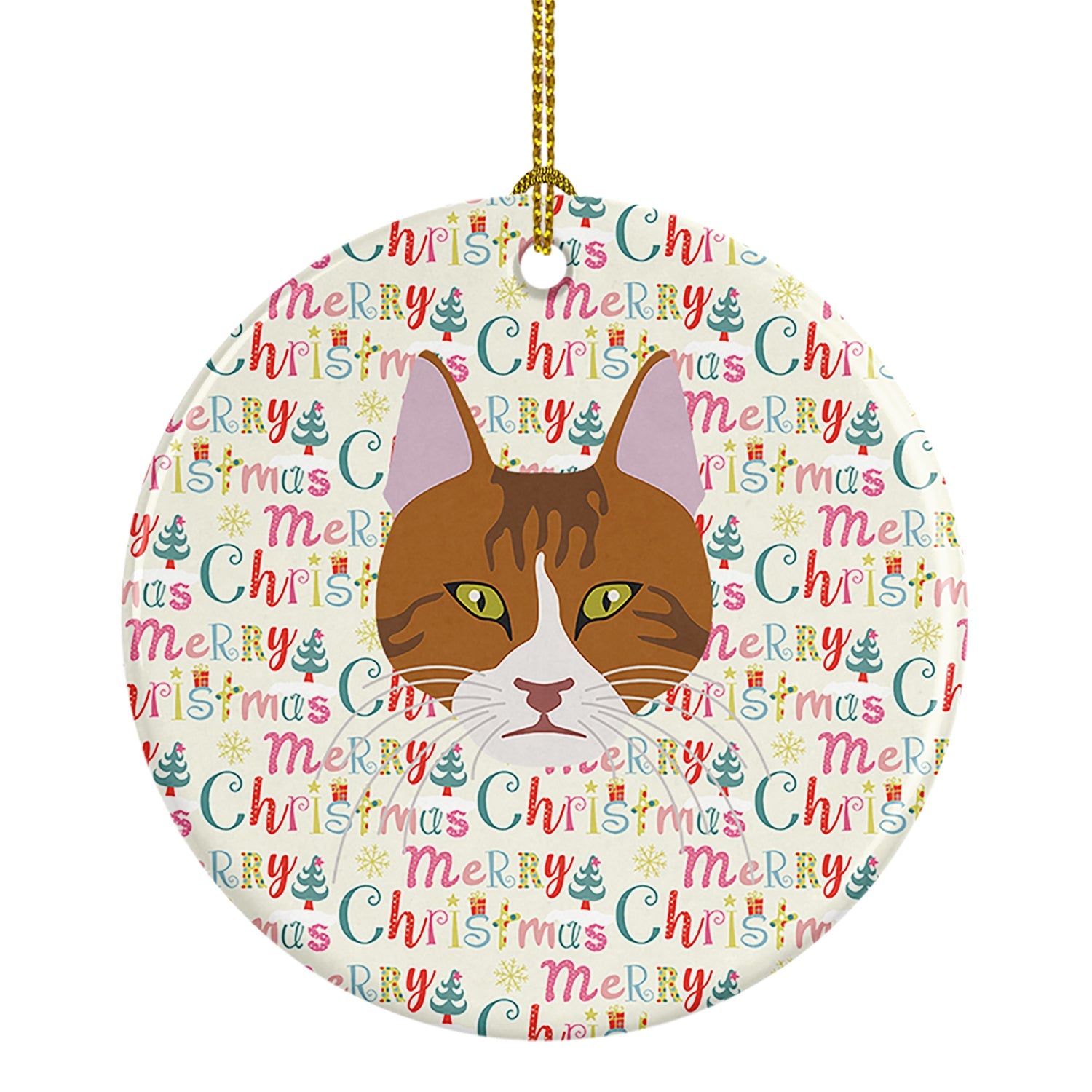Decorate your space with our Christmas Aegean Cat artwork on a Ornament. Add a touch of personalized charm to your Christmas tree this holiday season with our Ceramic Ornament. Measuring 2.8125 inches in diameter, this round porcelain ornament beautifully reflects your festive lights, enhancing your holiday decor. The gloss surface sets off the vibrant, full-color artwork contributed by one of our talented artists, bringing a pop of color and joy to your tree. This Ceramic Ornament doesn't stop at being merely decorative. The white back is designed for personalization. Write a heartfelt message, mark a special year, or inscribe a date with a paint pen or a permanent marker to create a treasured memento. Please ensure you allow any personalization to dry thoroughly before handling to maintain the pristine finish. Included with the ornament is a delicate gold cord for easy hanging. Made in the USA, this Ceramic Ornament makes an exceptional gift for a pet sitter, teacher, family member, or anyone you wish to share a little Christmas magic with. With its blend of style, charm, and personal touch, it's a meaningful addition to any Christmas tree.