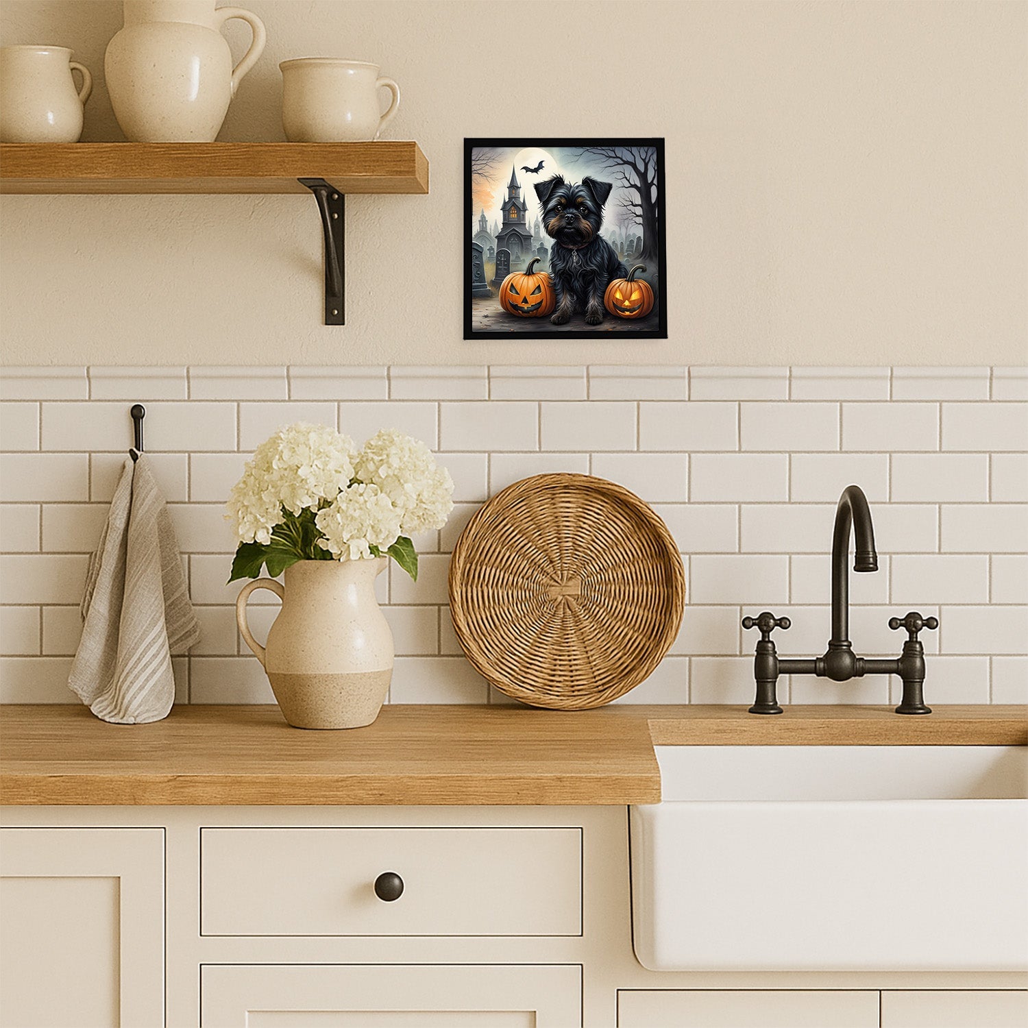 Framed Metal Print featuring breed specific Affenpinscher artwork. Celebrate Halloween with this Halloween Framed Metal Print. Looking for wall art that’s stylish, safe, and made to last? Our 8x8 Framed Metal Prints are designed with modern living in mind. Each piece features original artwork printed on durable aluminum, set in a sleek frame that measures 3/4 inch deep for a clean, contemporary finish. Unlike glass prints, these are lightweight, shatter-free, and family-safe. Perfect for kitchens, bathrooms, or covered porches where traditional décor might not hold up. The built-in sawtooth hanger molded into the back makes it easy to hang right out of the box—just use your own nails or screws. Cleaning is simple too: a quick wipe with a damp cloth and mild soap keeps your artwork looking vibrant. Proudly made in Alabama, every print supports our community of artists while adding personality and charm to your home.