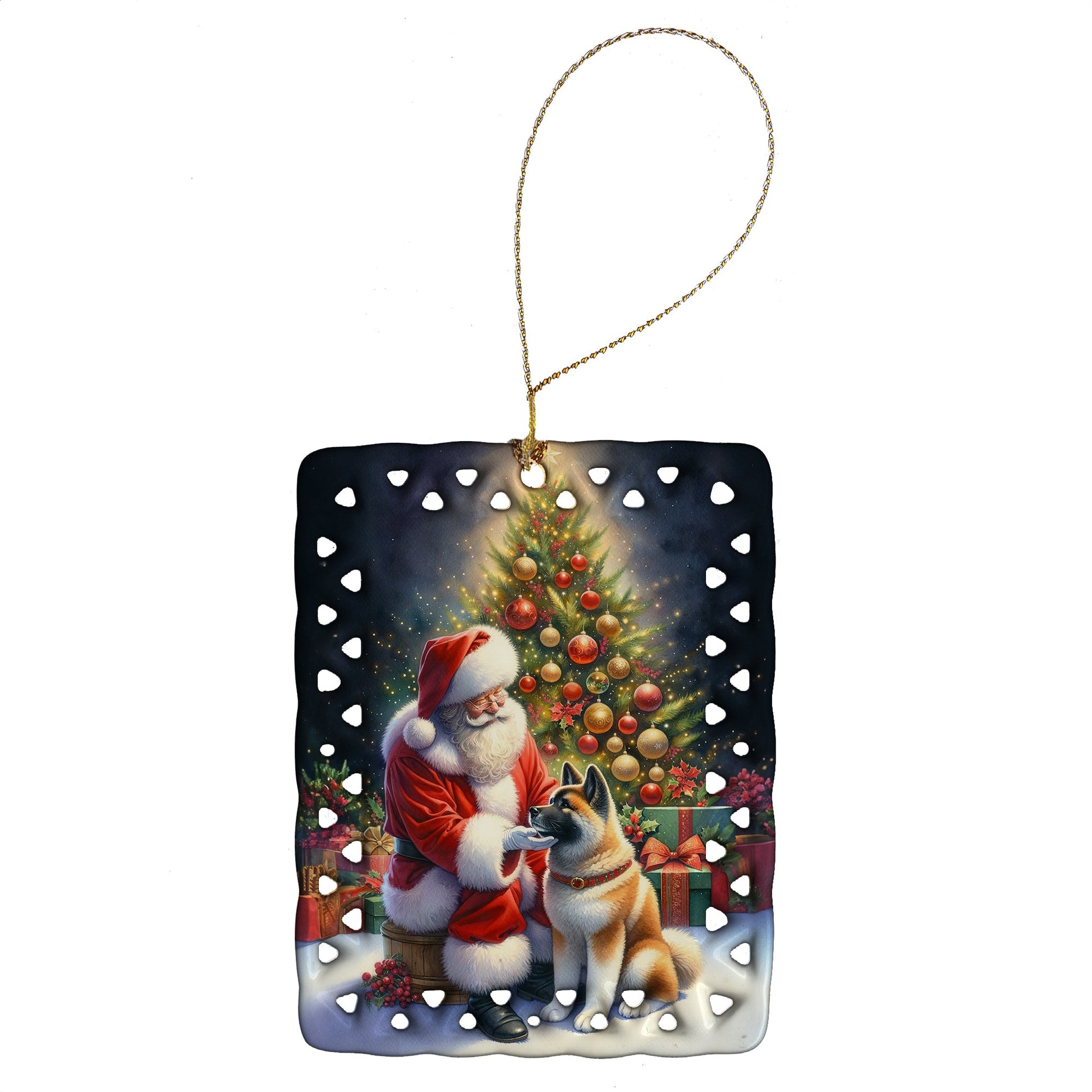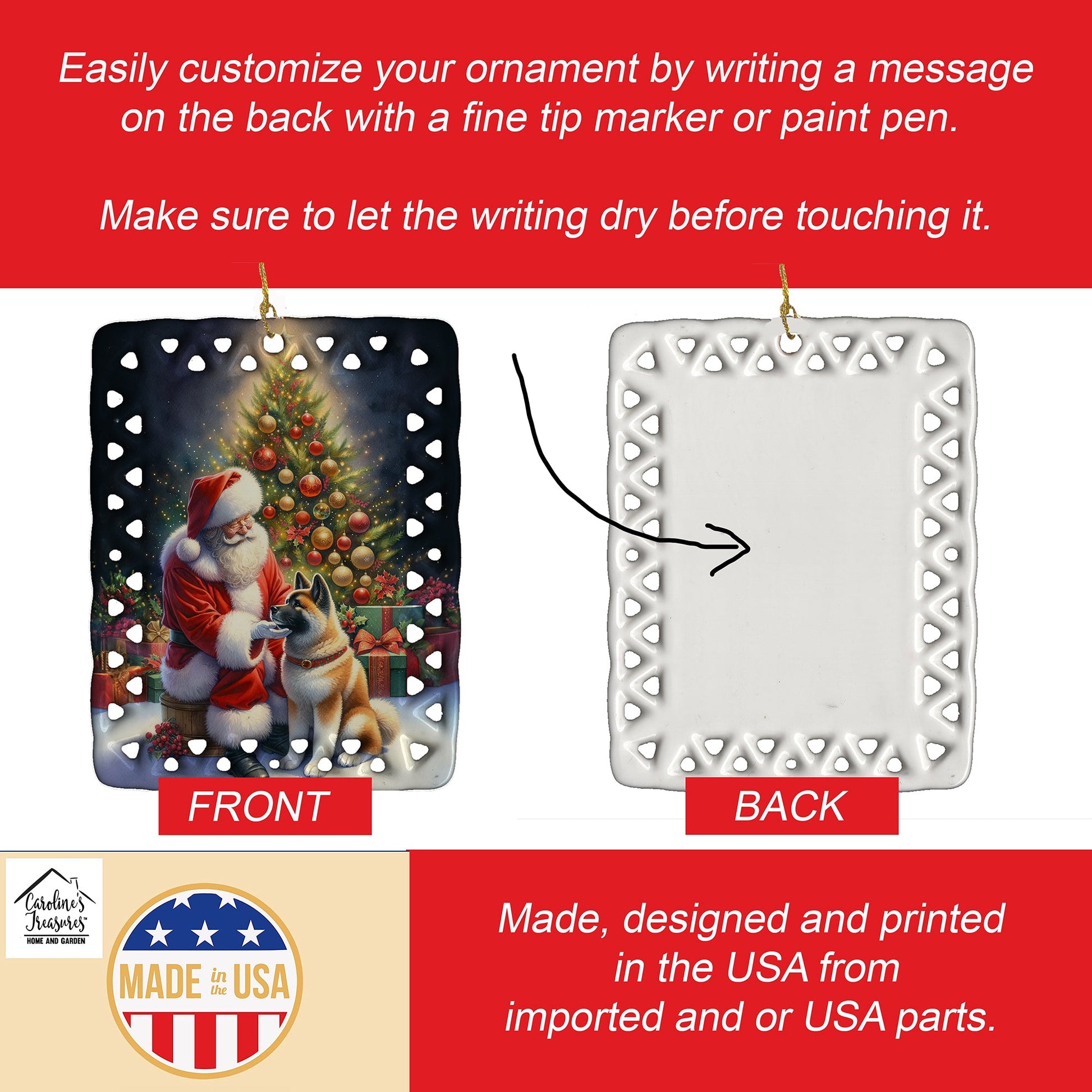 Porcelain Ornament featuring breed specific Akita artwork. Celebrate Christmas with this Christmas Ornament. Add a unique, personal touch to your holiday decor with our Rectangular Lattice Porcelain Ornament. Perfect for creating cherished memories, this high-quality ornament shines under festive lights, reflecting warmth and joy throughout your Christmas tree. Crafted with a glossy finish, it showcases vibrant, full-color artwork contributed by our talented artists, ensuring your tree is adorned with a burst of color and holiday spirit. What sets this Porcelain Ornament apart is its customizable white back. Use a paint pen or permanent marker to write a heartfelt message, commemorate a special year, or mark an unforgettable date, turning this ornament into a keepsake that will be treasured for years to come. For best results, allow any personalization to dry thoroughly before handling. Each ornament comes complete with a delicate gold cord, making it easy to hang and display. Proudly made in the USA, this ornament measures 3.375 x 2.625 inches and is a thoughtful gift for pet sitters, teachers, family members, or anyone who would appreciate a little extra holiday magic. Bring style, charm, and a touch of personal meaning to your Christmas tree with this beautifully designed ornament..