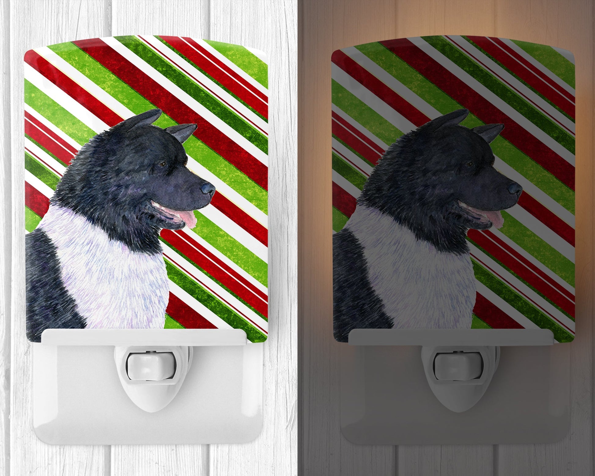 Akita Candy Cane Holiday Christmas Ceramic Night Light SS4590CNL