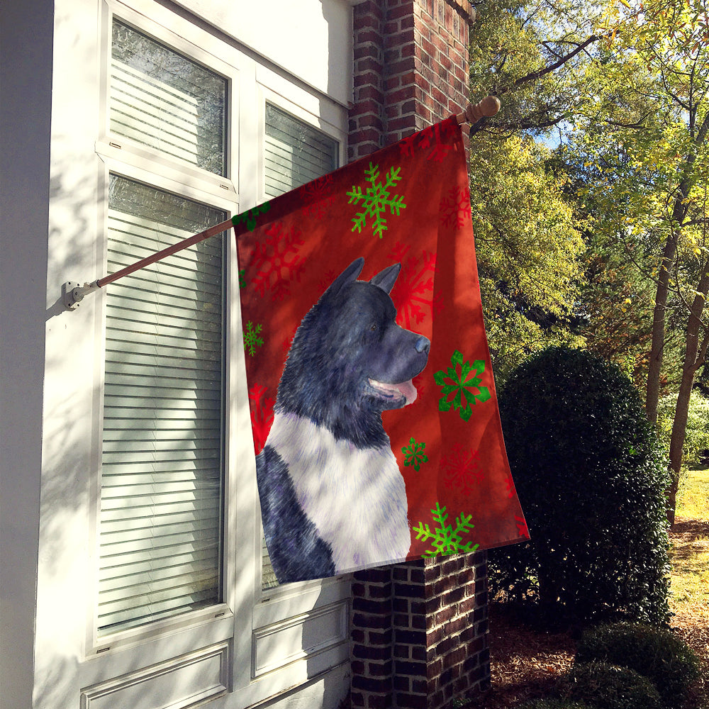 Akita Red and Green Snowflakes Holiday Christmas Flag Canvas House Size