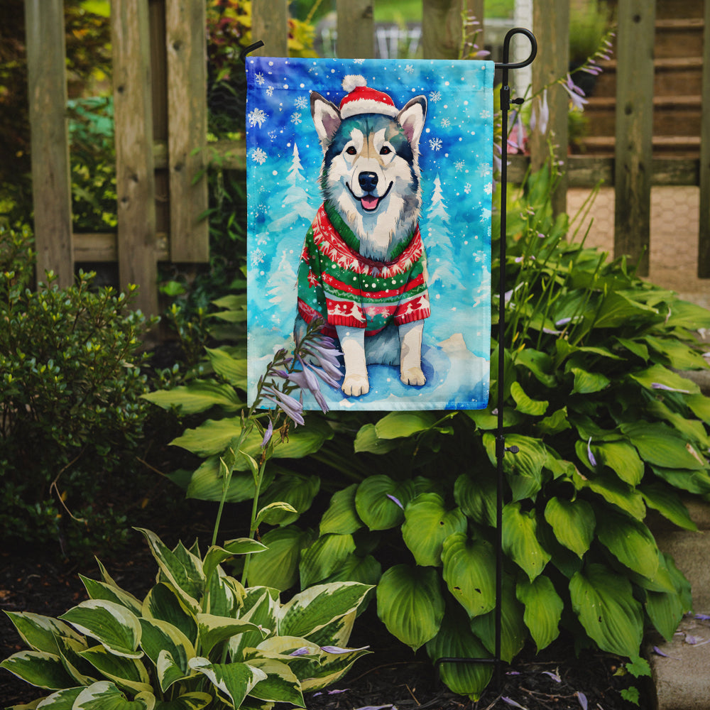 Decorate your space with our Christmas Alaskan Malamute artwork on a Garden Flag. Enhance the beauty of your garden, patio, or yard with Caroline's Treasures Decorative Garden Flag, proudly made in the USA. Crafted from two pieces of thick, double-sided polyester fabric, this 2-ply garden flag is designed to withstand various weather conditions, making it water-resistant and weatherproof. Featuring correctly readable words on both sides, this garden flag offers a delightful visual experience from any angle. With its heavier weight, it stands out among other garden flags, ensuring stability and durability even in wind, rain, and snow. Measuring approximately 11 1/4 inches by 15 1/2 inches, this flag allows you to personalize your outdoor decor. It comes with a 1 1/2-inch sleeve sewn in, allowing easy attachment to any standard garden flag stand or garden size porch hanger (sold separately). Make a statement in your outdoor space with Caroline's Treasures Decorative Garden Flag, a vibrant and high-quality flag that adds color and personality to your surroundings. Proudly made in the USA, it's a symbol of quality craftsmanship and attention to detail.