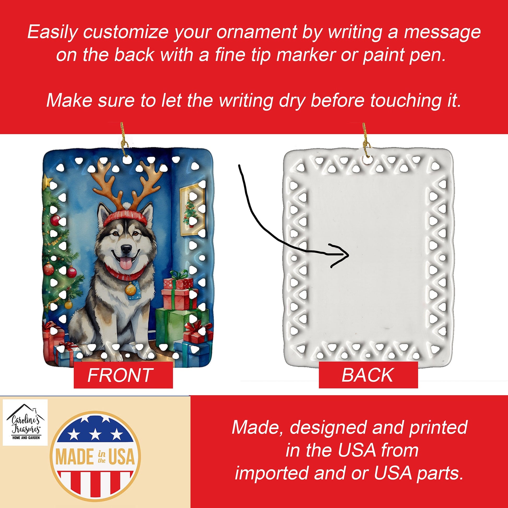 Alaskan Malamute Christmas Reindeer Porcelain Ornament
