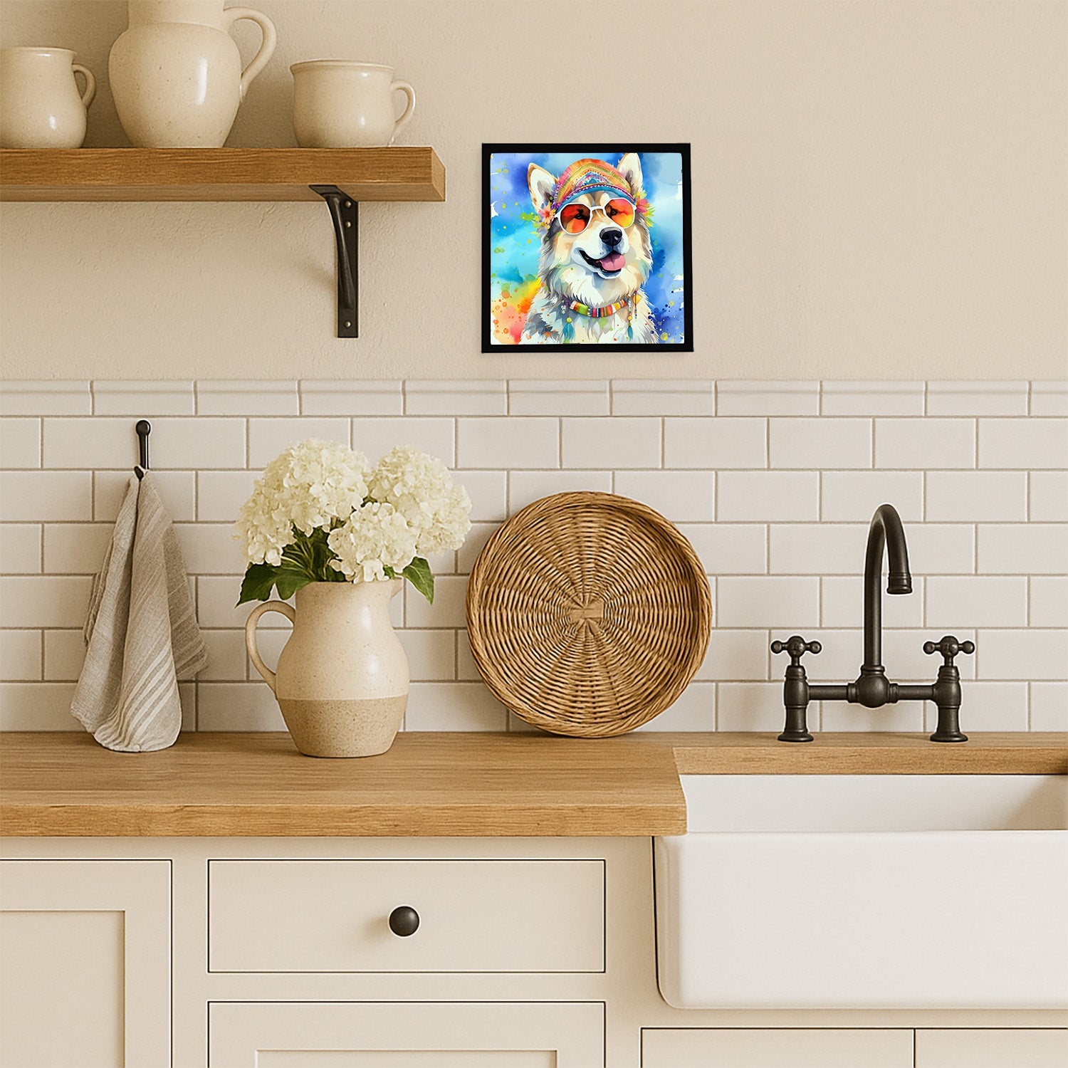 Alaskan Malamute Hippie Dawg Framed Metal Print