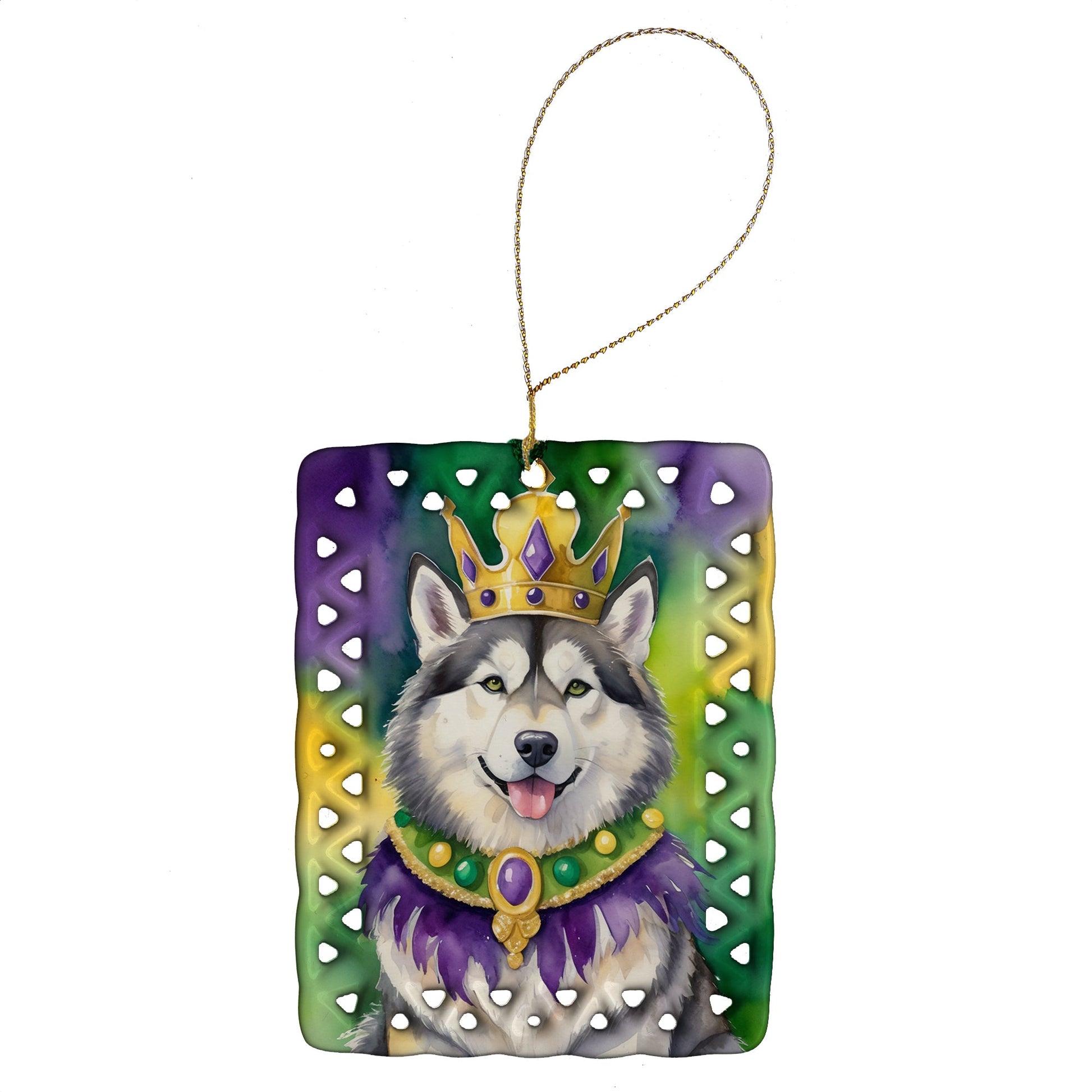 Alaskan Malamute King of Mardi Gras Porcelain Ornament