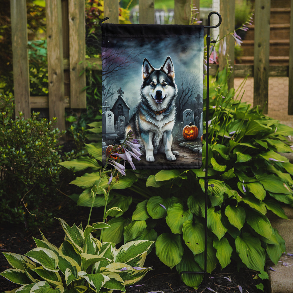 Alaskan Malamute Spooky Halloween Garden Flag – Dog in Cemetery Scene