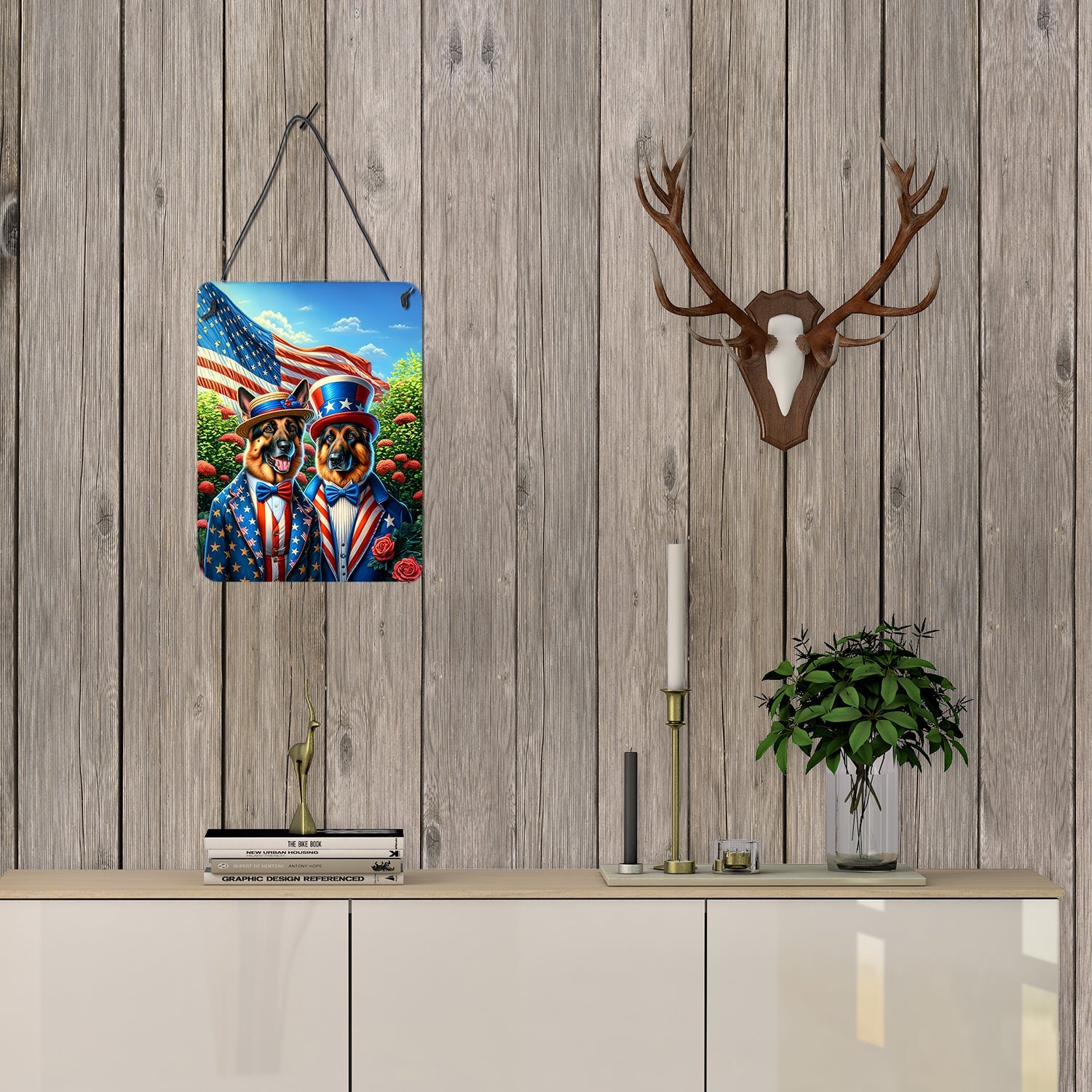 Decorate your space with our German Shepherd artwork on a Metal Print. Spruce up your space with our Indoor or Outdoor Aluminum Artwork Prints. Designed to brighten your kitchen, bathroom, office, or outdoor areas like patios and porches, these prints offer a unique way to decorate your home or workspace. Measuring 12 by 16 inches, the prints are vibrant, full color, and bring an element of artistry to any setting. What makes these prints special is their durability and resistance to the elements. If placed outside, they can withstand direct sunlight for a considerable time before showing signs of fading. Crafted from rust and fade-resistant aluminum, these prints are built to last and maintain their vibrant colors. Each print comes with a black hanging rope and rounded corners for safety. The back of the print showcases a brushed silver color, adding a touch of sophistication. The lightweight design allows easy hanging with virtually any nail or screw, making installation a breeze. Whether indoors or outdoors, these prints add a distinctive touch to any space.