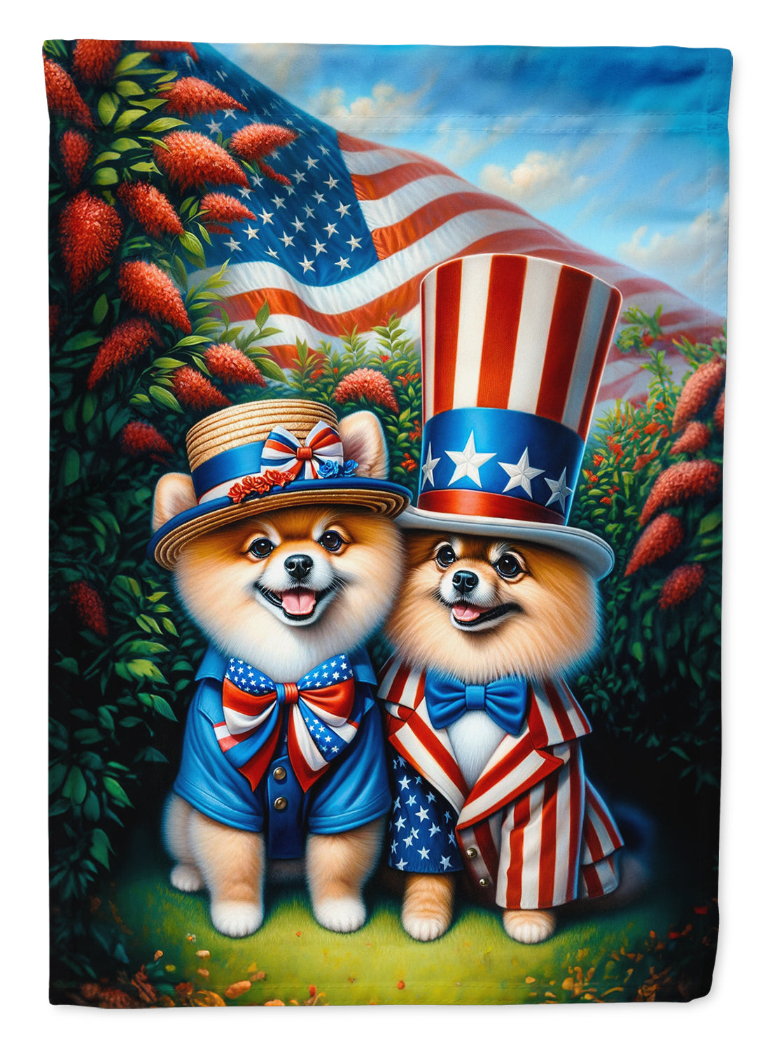 All American Pomeranian Garden Flag – Dogs with American Flag Background by Caroline’s Treasures