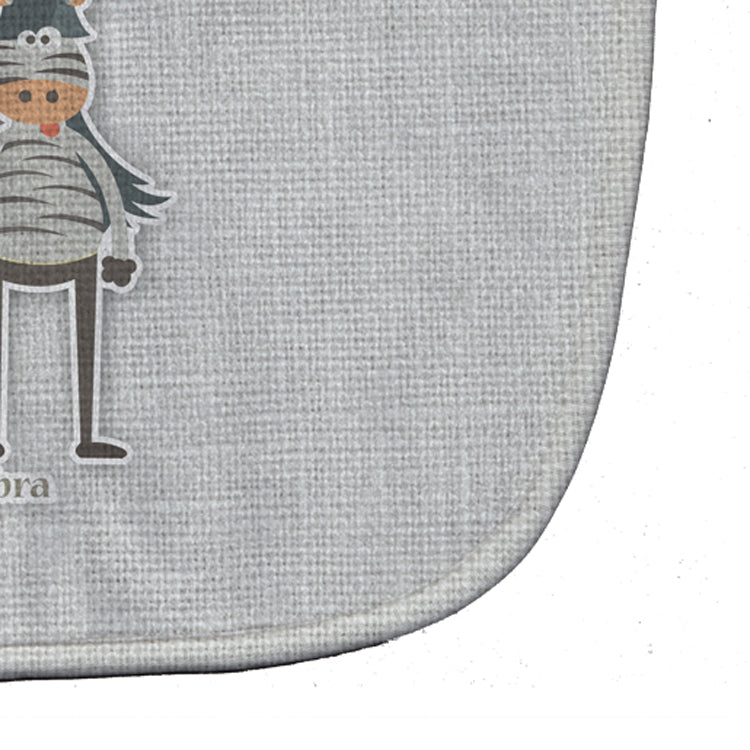 Decorate your space with our Zebra artwork on a Baby Bib. Cute and Functional. Dyed plush fabric baby bib with Velcro closure. Made of ultra-smooth micro-mink polyester that reverses to 100% cotton terry loops. Measures 10 inches x 13 inches, 0.8 oz. per piece. Edges are finished with binding. Machine washable and dry on low heat. Fade resistant and stain resistant. Top fabric gets even softer after the first wash.