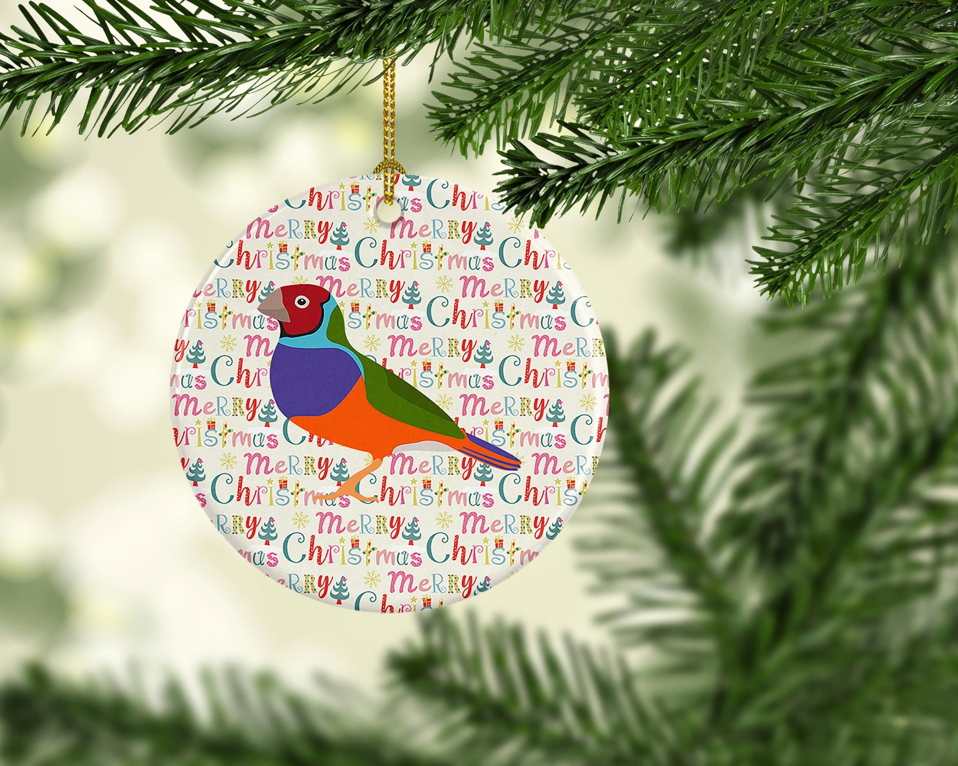 Decorate your space with our Christmas Amadina artwork on a Ornament. Add a touch of personalized charm to your Christmas tree this holiday season with our Ceramic Ornament. Measuring 2.8125 inches in diameter, this round porcelain ornament beautifully reflects your festive lights, enhancing your holiday decor. The gloss surface sets off the vibrant, full-color artwork contributed by one of our talented artists, bringing a pop of color and joy to your tree. This Ceramic Ornament doesn't stop at being merely decorative. The white back is designed for personalization. Write a heartfelt message, mark a special year, or inscribe a date with a paint pen or a permanent marker to create a treasured memento. Please ensure you allow any personalization to dry thoroughly before handling to maintain the pristine finish. Included with the ornament is a delicate gold cord for easy hanging. Made in the USA, this Ceramic Ornament makes an exceptional gift for a pet sitter, teacher, family member, or anyone you wish to share a little Christmas magic with. With its blend of style, charm, and personal touch, it's a meaningful addition to any Christmas tree.