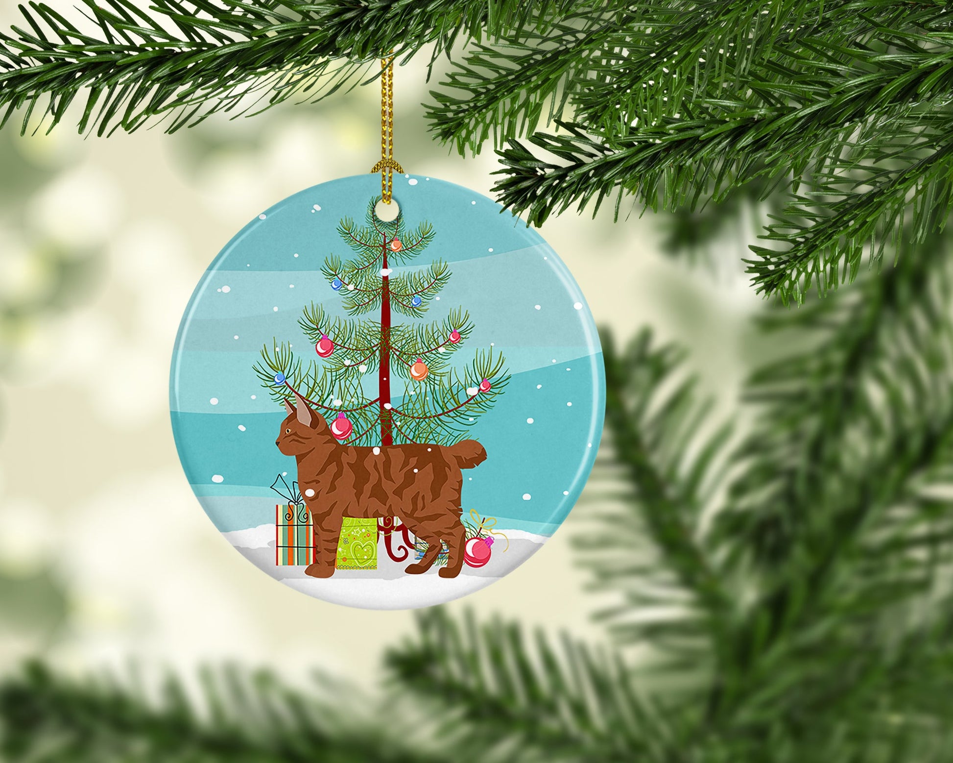 American Bobtail #2 Cat Merry Christmas Ornament - Round Ceramic Ornament – Artist-Designed Keepsake Decoration