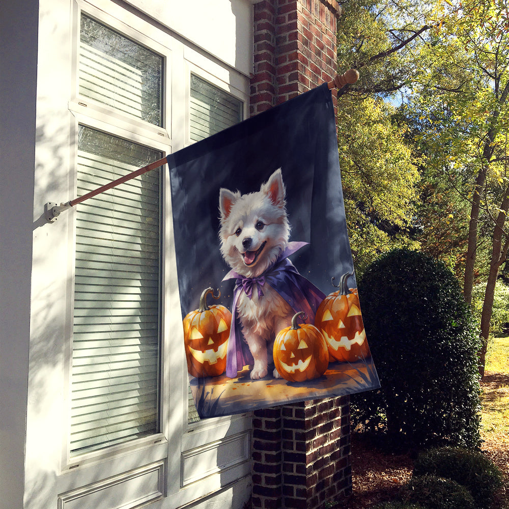 House Flag featuring breed specific American Eskimo artwork. Celebrate Halloween with this Halloween Large Flag. Presenting our Heavy Duty Polyester House Size Decorative Sleeve Pole Flag, a vibrant addition to enhance the aesthetic appeal of your home. This large decorative flag, measuring approximately 28 x 40 inches, offers ample coverage and visibility. Each flag is meticulously sewn and made individually, ensuring a unique piece that may slightly vary in size. It's a sleeve pole flag, designed to fit a standard decorative flag pole effortlessly. Please note that the flag pole and bracket are not included and should be purchased separately. What sets our flag apart is its dual-sided print. The design is mirrored on both sides of the fabric, allowing for uniform visibility regardless of the angle. Printed in full color, our flag showcases vibrant hues that truly stand out. To ensure lasting vibrancy and durability, the dyes are heat-set into the fabric. This ensures your flag remains bright and captivating through various weather conditions. Elevate the look of your home with our Heavy Duty Polyester House Size Decorative Sleeve Pole Flag!