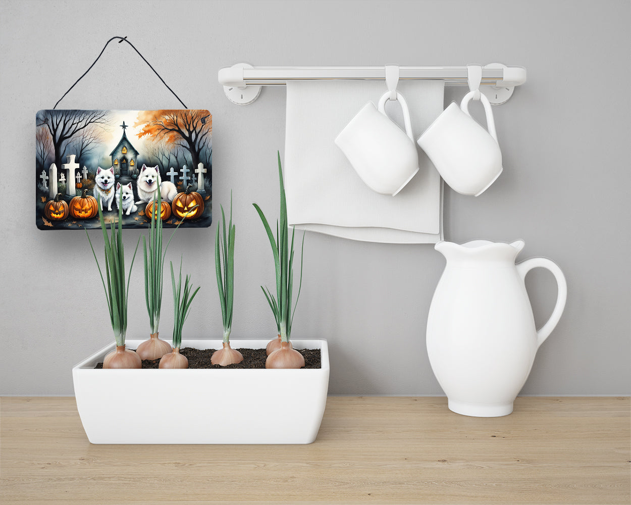 American Eskimo Spooky Halloween Wall or Door Hanging Prints