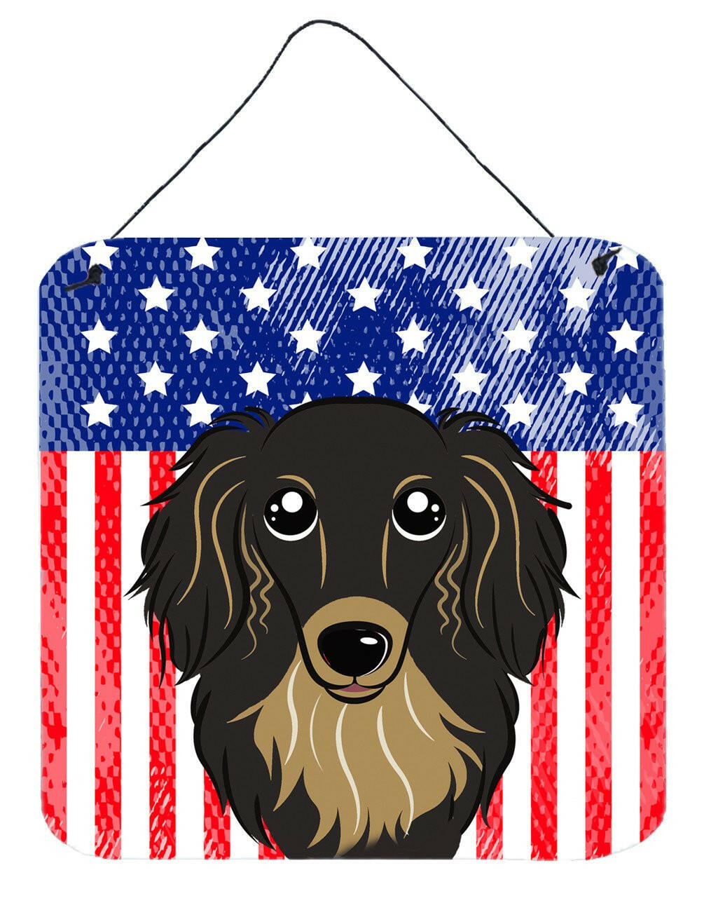 American Flag and Longhair Black and Tan Dachshund Wall or Door Hanging Prints BB2143DS66