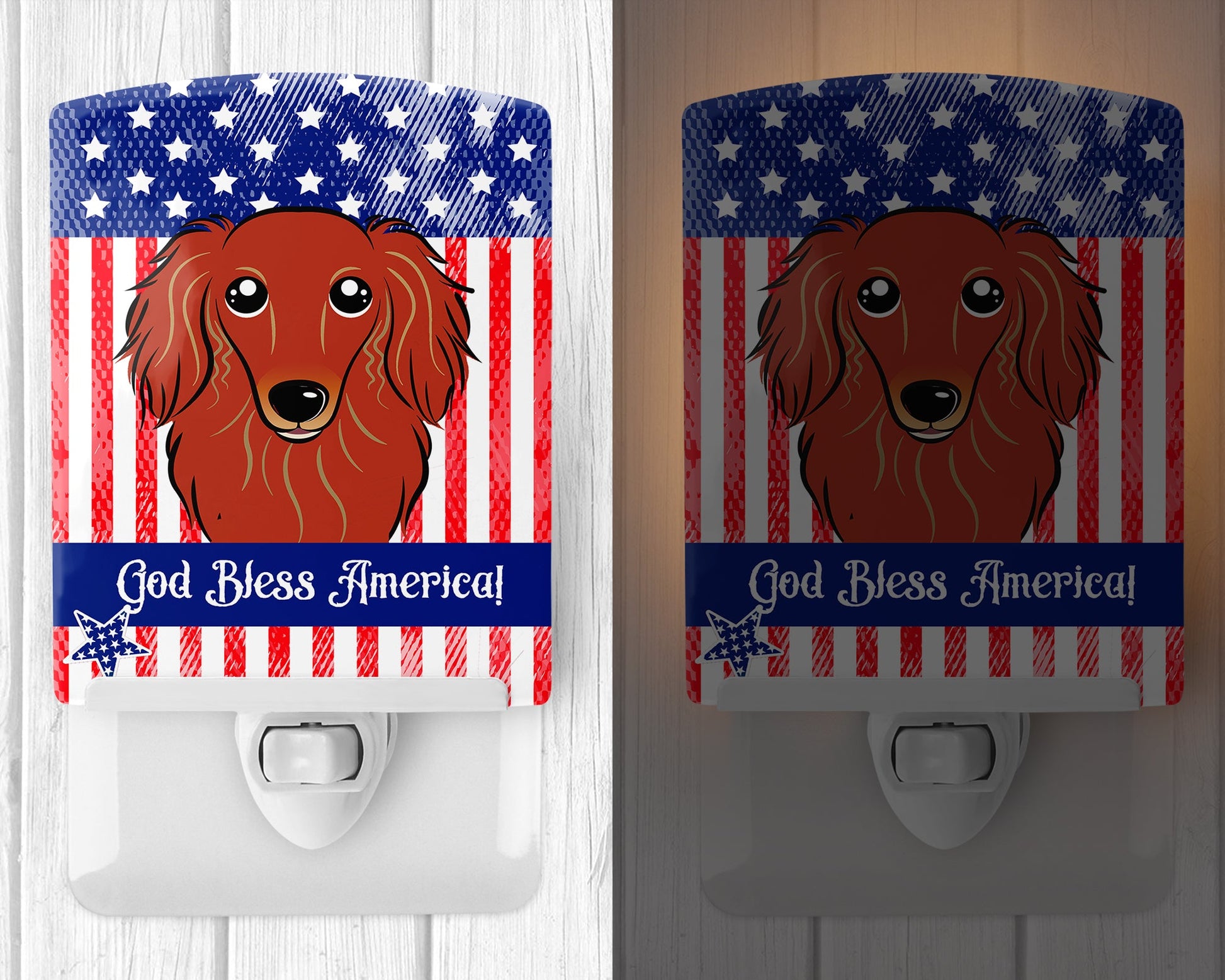 American Flag and Longhair Red Dachshund Ceramic Night Light BB2144CNL