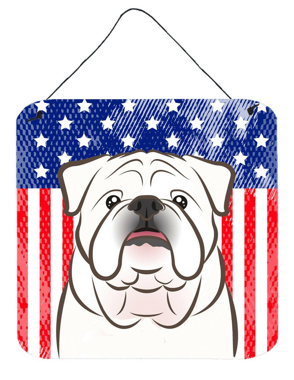 American Flag and White English Bulldog Wall or Door Hanging Prints BB2150DS66
