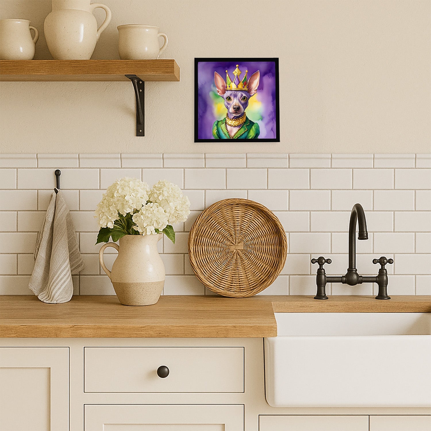 Framed Metal Print featuring breed specific American Hairless Terrier artwork. Celebrate Mardi Gras with this Mardi Gras Framed Metal Print. Looking for wall art that’s stylish, safe, and made to last? Our 8x8 Framed Metal Prints are designed with modern living in mind. Each piece features original artwork printed on durable aluminum, set in a sleek frame that measures 3/4 inch deep for a clean, contemporary finish. Unlike glass prints, these are lightweight, shatter-free, and family-safe. Perfect for kitchens, bathrooms, or covered porches where traditional décor might not hold up. The built-in sawtooth hanger molded into the back makes it easy to hang right out of the box—just use your own nails or screws. Cleaning is simple too: a quick wipe with a damp cloth and mild soap keeps your artwork looking vibrant. Proudly made in Alabama, every print supports our community of artists while adding personality and charm to your home.