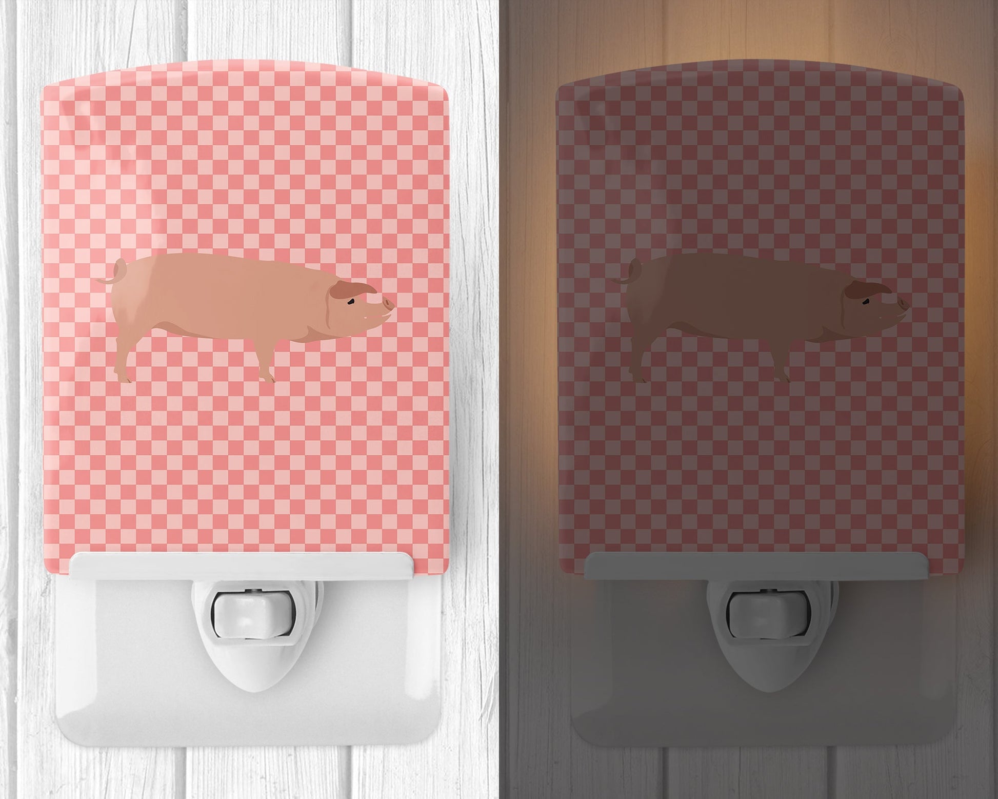 American Landrace Pig Pink Check Ceramic Night Light BB7932CNL