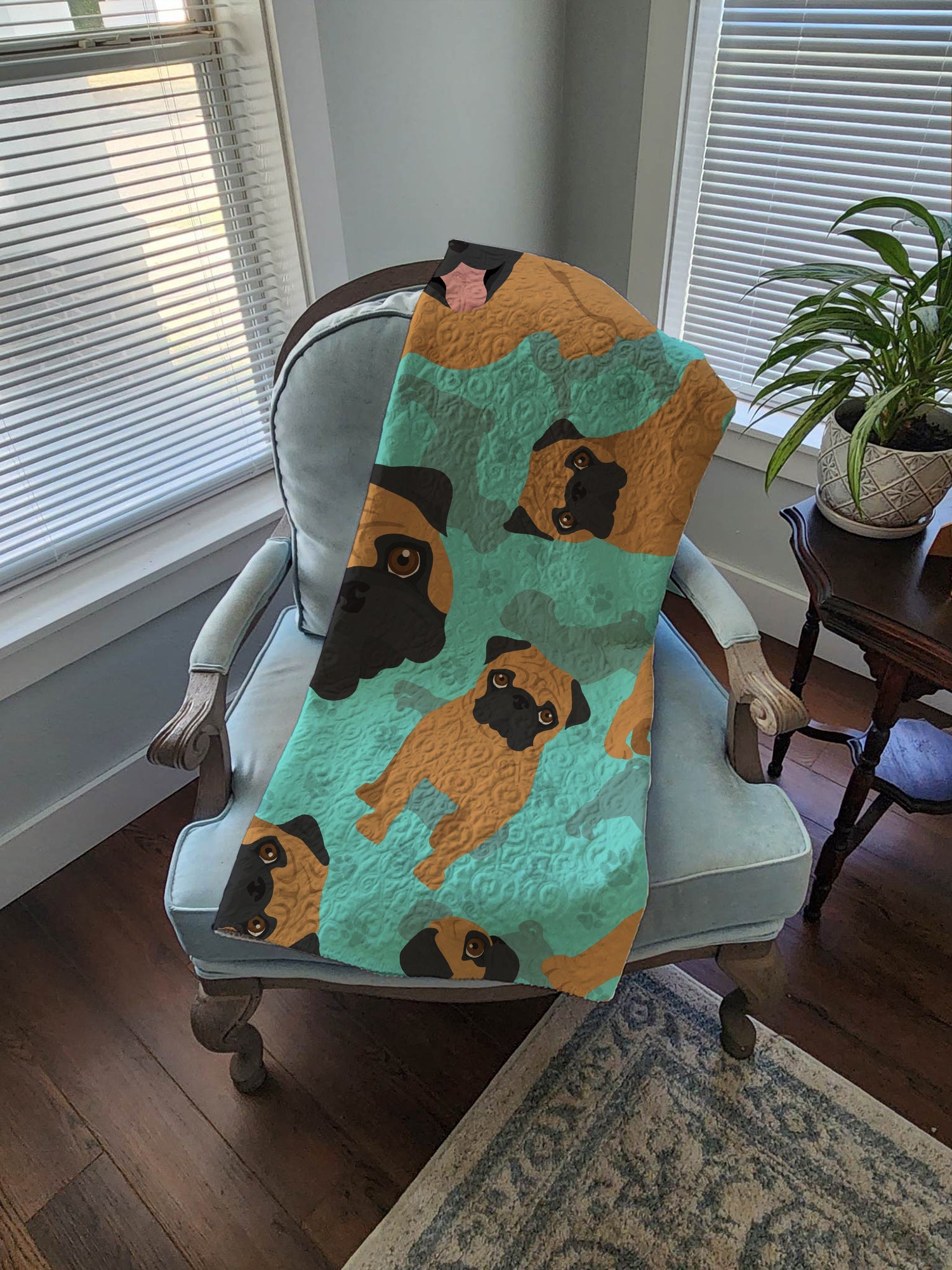 Apricot Pug Quilted Blanket 50x60