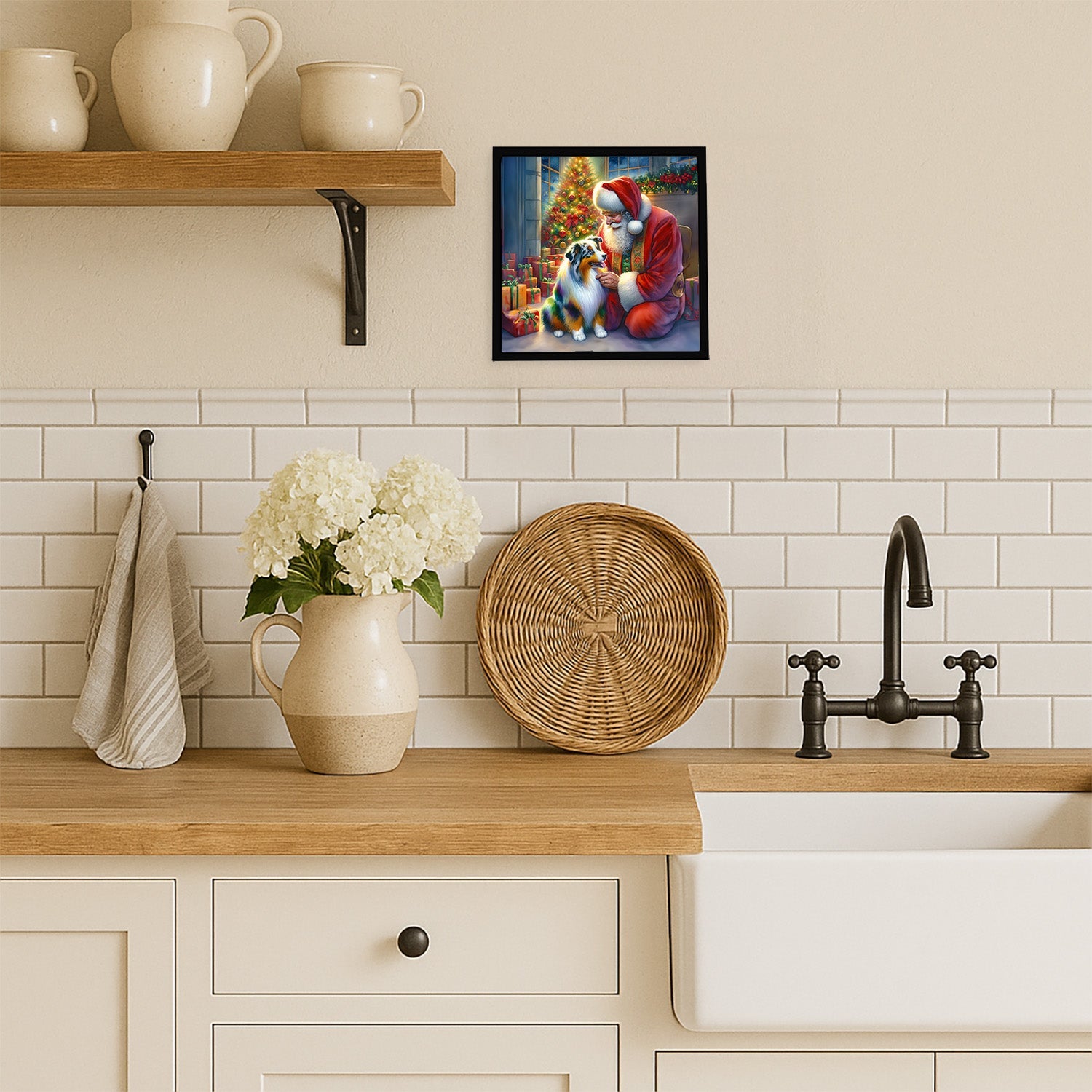 Framed Metal Print featuring breed specific Australian Shepherd artwork. Celebrate Christmas with this Christmas Framed Metal Print. Looking for wall art that’s stylish, safe, and made to last? Our 8x8 Framed Metal Prints are designed with modern living in mind. Each piece features original artwork printed on durable aluminum, set in a sleek frame that measures 3/4 inch deep for a clean, contemporary finish. Unlike glass prints, these are lightweight, shatter-free, and family-safe. Perfect for kitchens, bathrooms, or covered porches where traditional décor might not hold up. The built-in sawtooth hanger molded into the back makes it easy to hang right out of the box—just use your own nails or screws. Cleaning is simple too: a quick wipe with a damp cloth and mild soap keeps your artwork looking vibrant. Proudly made in Alabama, every print supports our community of artists while adding personality and charm to your home.
