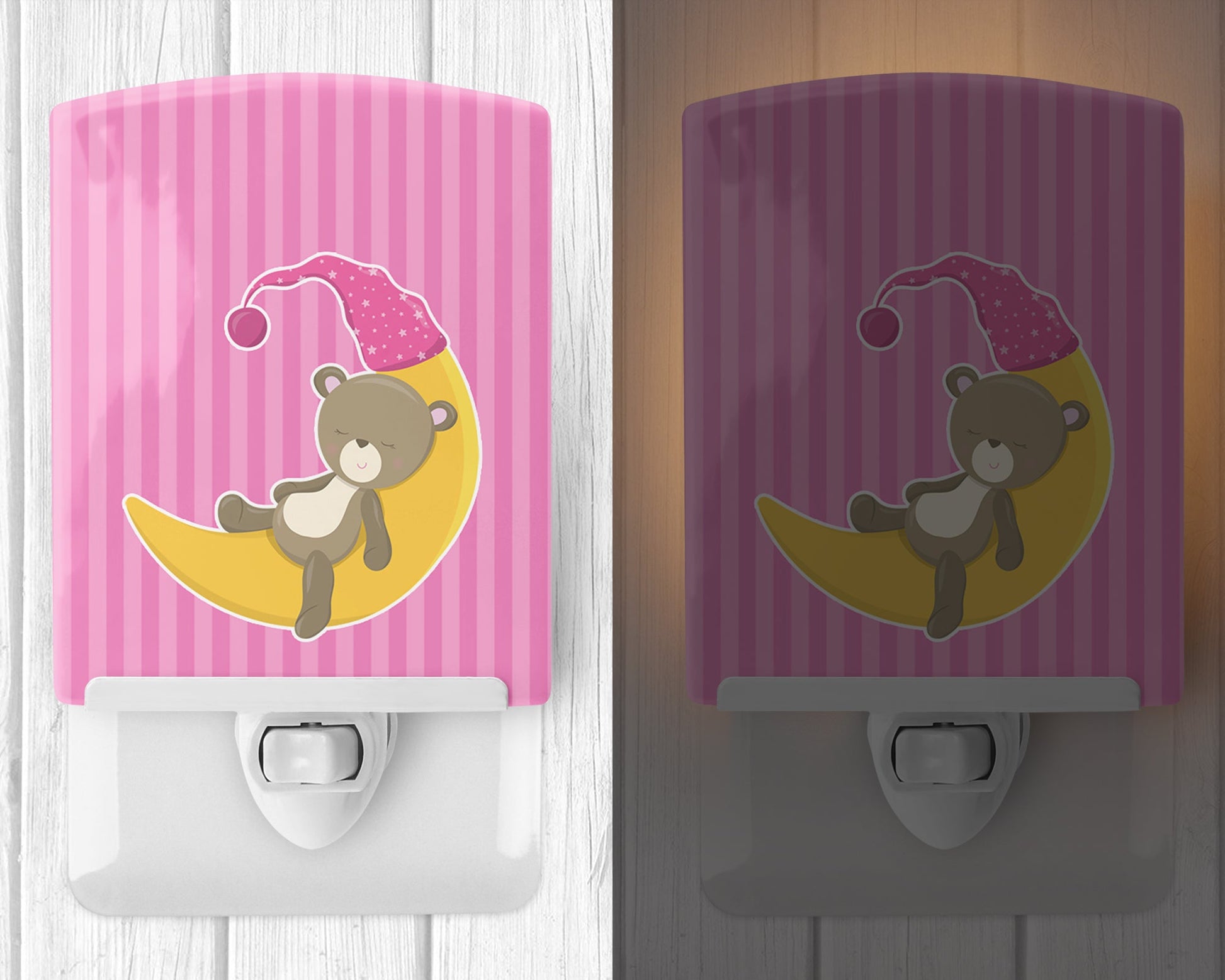 Baby Girl Bear on Moon Ceramic Night Light BB8613CNL