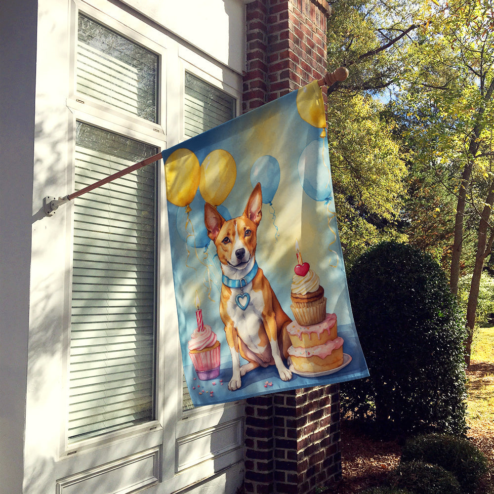 House Flag featuring breed specific Basenji artwork. Celebrate Birthday with this Birthday Large Flag. Presenting our Heavy Duty Polyester House Size Decorative Sleeve Pole Flag, a vibrant addition to enhance the aesthetic appeal of your home. This large decorative flag, measuring approximately 28 x 40 inches, offers ample coverage and visibility. Each flag is meticulously sewn and made individually, ensuring a unique piece that may slightly vary in size. It's a sleeve pole flag, designed to fit a standard decorative flag pole effortlessly. Please note that the flag pole and bracket are not included and should be purchased separately. What sets our flag apart is its dual-sided print. The design is mirrored on both sides of the fabric, allowing for uniform visibility regardless of the angle. Printed in full color, our flag showcases vibrant hues that truly stand out. To ensure lasting vibrancy and durability, the dyes are heat-set into the fabric. This ensures your flag remains bright and captivating through various weather conditions. Elevate the look of your home with our Heavy Duty Polyester House Size Decorative Sleeve Pole Flag!