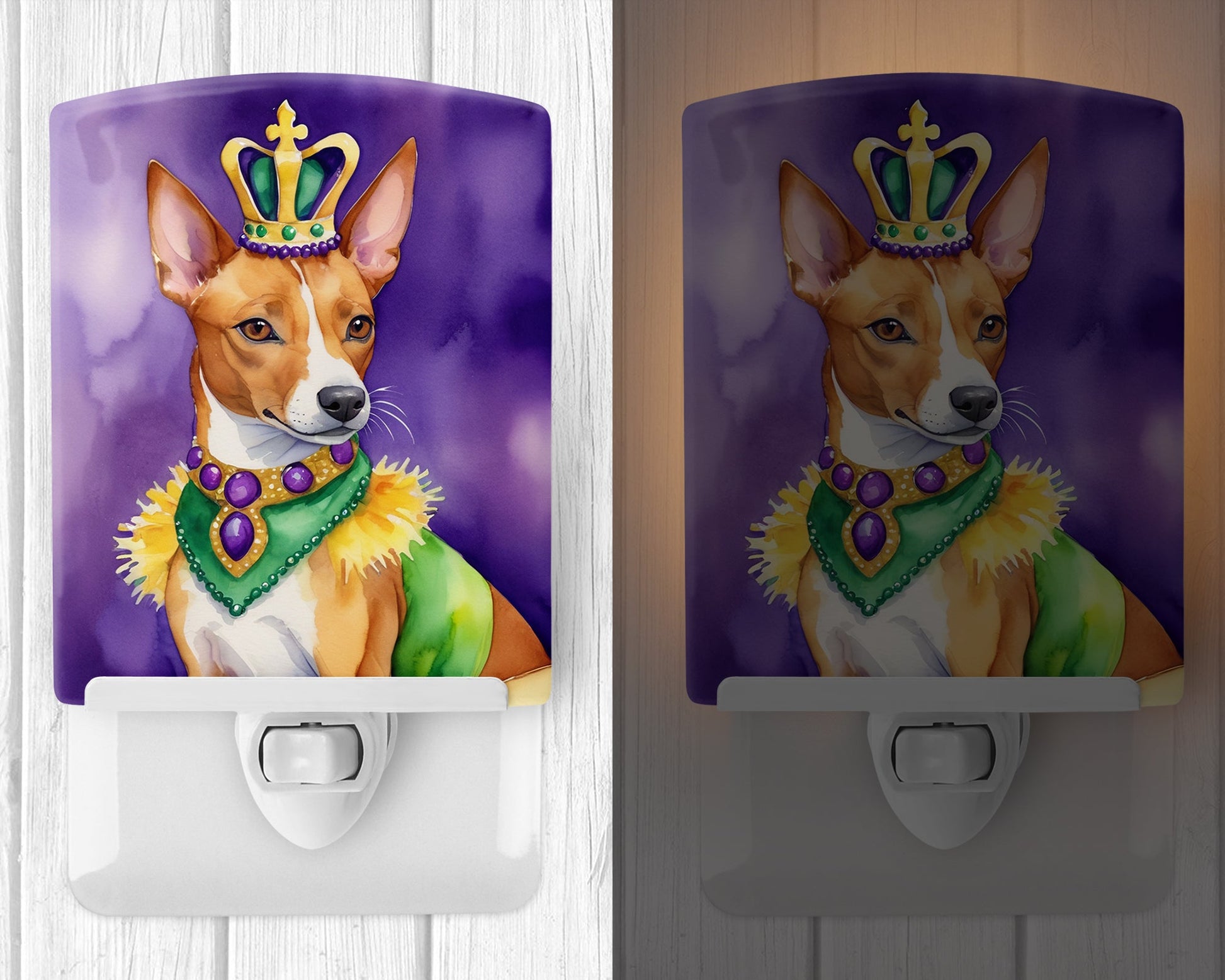 Decorate your space with our Mardi Gras Basenji artwork on a Night Light. Introduce a splash of artistic flair and subtle illumination to your space with the Decorative Ceramic Night Light from Caroline's Treasures. Perfect for any room, this night light seamlessly blends functionality with an aesthetic appeal, offering a stylish solution to brighten up dark corners of your home or office. Boasting a six-inch high by four-inch wide ceramic tile at the front, it showcases vivid, full-color artwork from distinguished artists, transforming a simple utility into a vibrant art piece. The artwork is securely encased in a robust metal holder, ensuring durability and longevity. Two screws are provided to firmly affix the tile into the holder. The holder extends three inches deep, housing an included bulb that emits a soft, welcoming glow. This product meets all safety standards, as evidenced by its UL approval. Proudly made in the United States from imported components, this Decorative Ceramic Night Light is not just a functional device; it's a statement piece that enhances the ambiance of your surroundings.