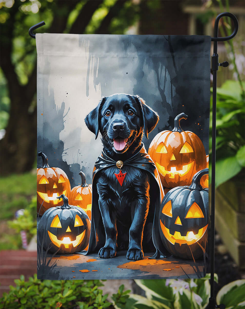 Black Labrador Retriever Puppy Halloween Garden Flag