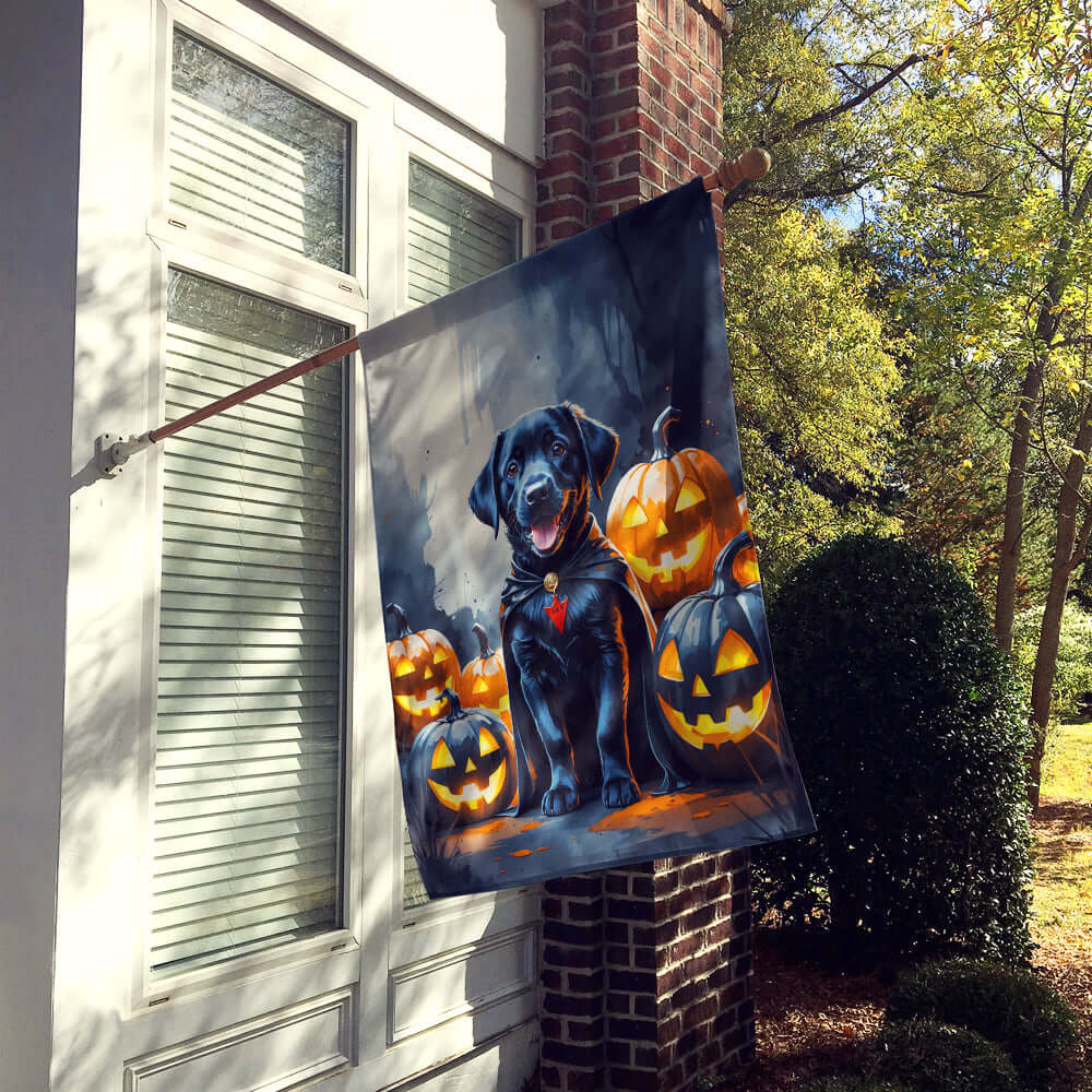 Black Labrador Retriever Puppy Halloween House Flag