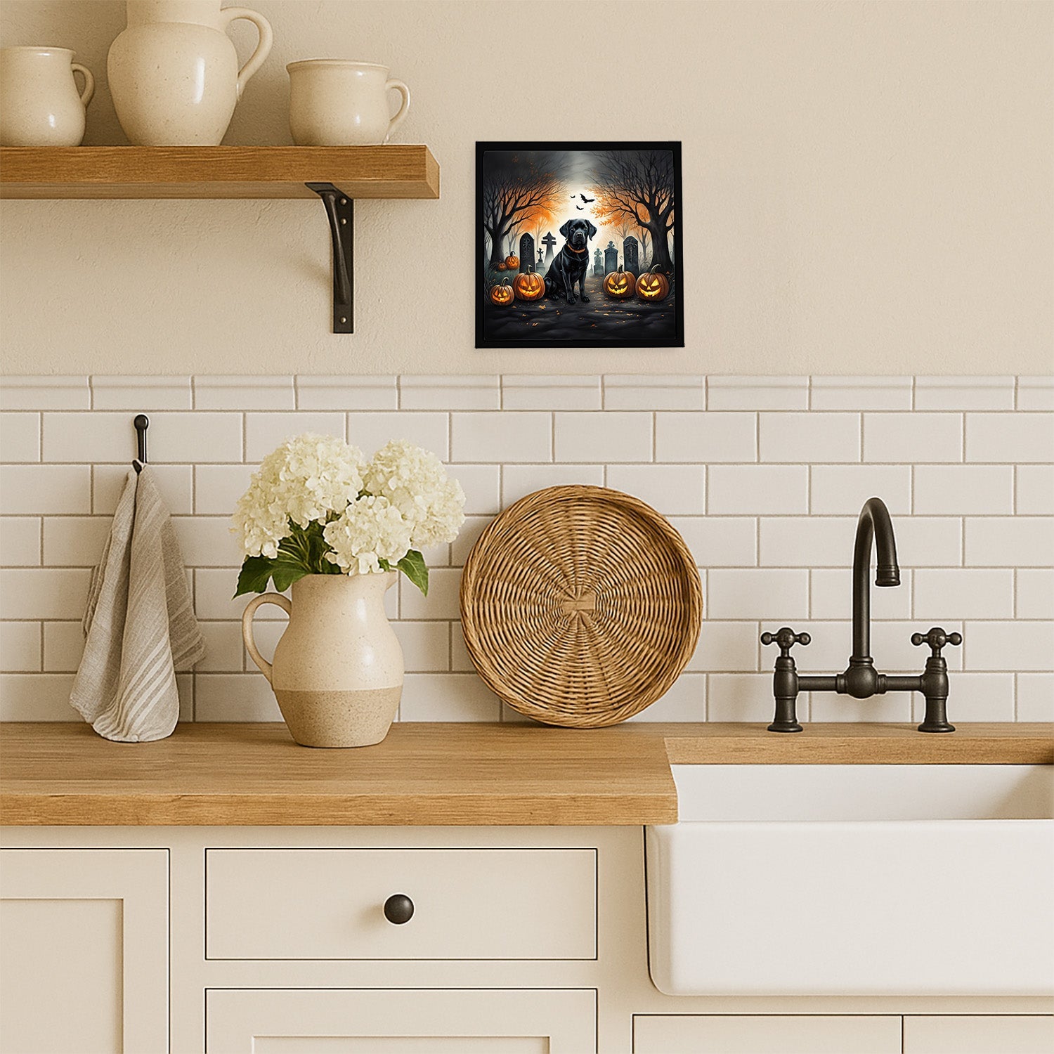 Black Labrador Retriever Spooky Halloween Framed Metal Print
