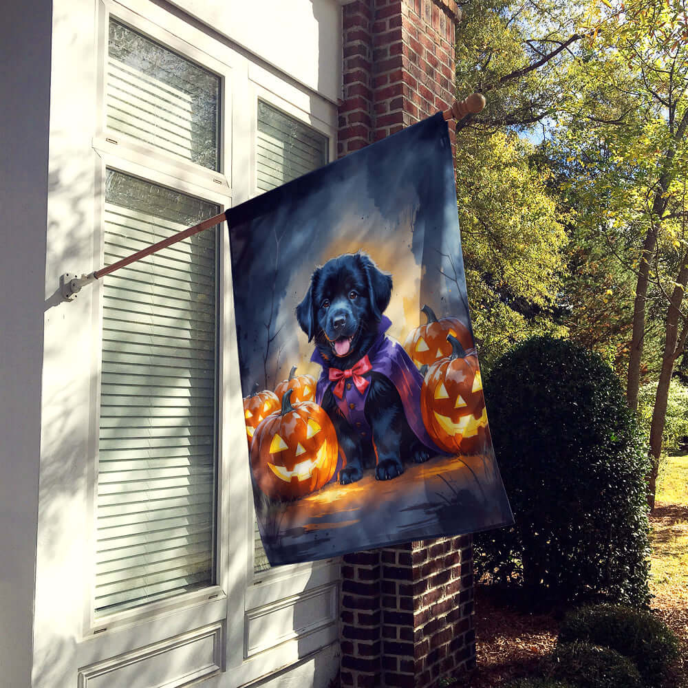 House Flag featuring breed specific Newfoundland artwork. Celebrate Halloween with this Halloween Large Flag. Presenting our Heavy Duty Polyester House Size Decorative Sleeve Pole Flag, a vibrant addition to enhance the aesthetic appeal of your home. This large decorative flag, measuring approximately 28 x 40 inches, offers ample coverage and visibility. Each flag is meticulously sewn and made individually, ensuring a unique piece that may slightly vary in size. It's a sleeve pole flag, designed to fit a standard decorative flag pole effortlessly. Please note that the flag pole and bracket are not included and should be purchased separately. What sets our flag apart is its dual-sided print. The design is mirrored on both sides of the fabric, allowing for uniform visibility regardless of the angle. Printed in full color, our flag showcases vibrant hues that truly stand out. To ensure lasting vibrancy and durability, the dyes are heat-set into the fabric. This ensures your flag remains bright and captivating through various weather conditions. Elevate the look of your home with our Heavy Duty Polyester House Size Decorative Sleeve Pole Flag!