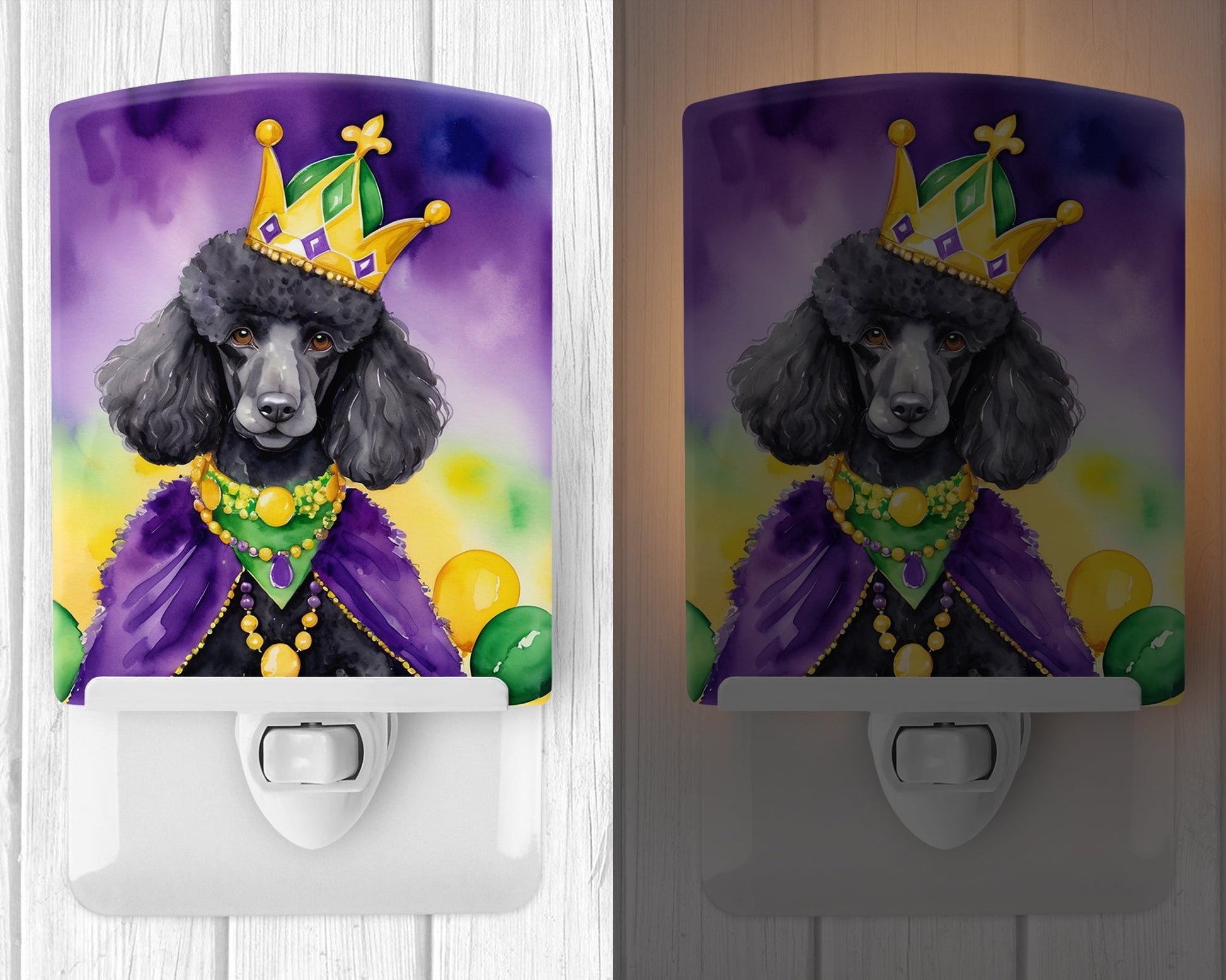 Black Poodle King of Mardi Gras Ceramic Night Light