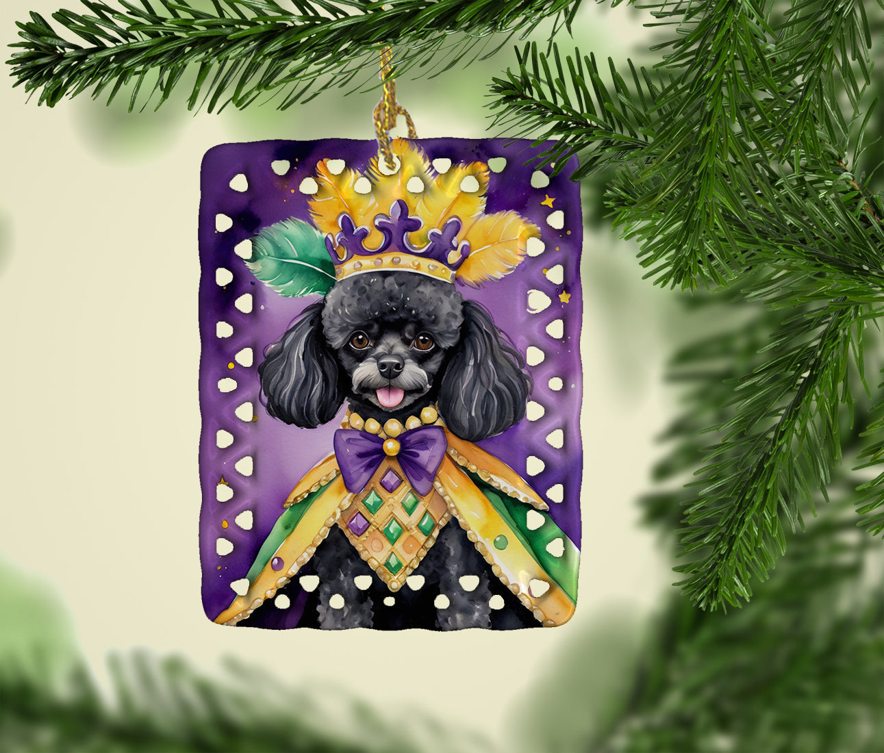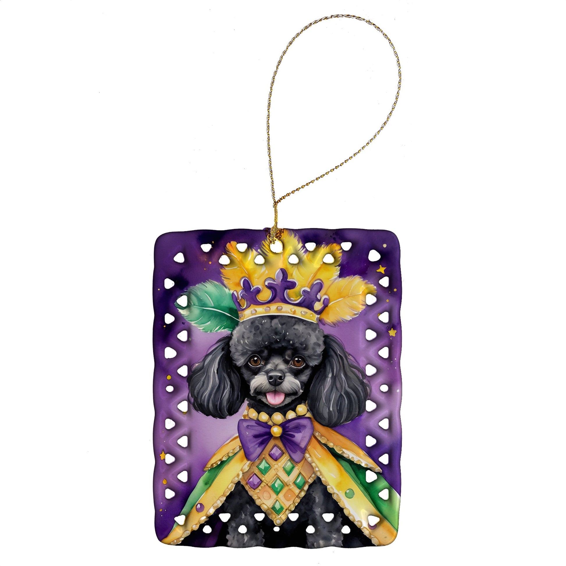 Black Poodle King of Mardi Gras Porcelain Ornament