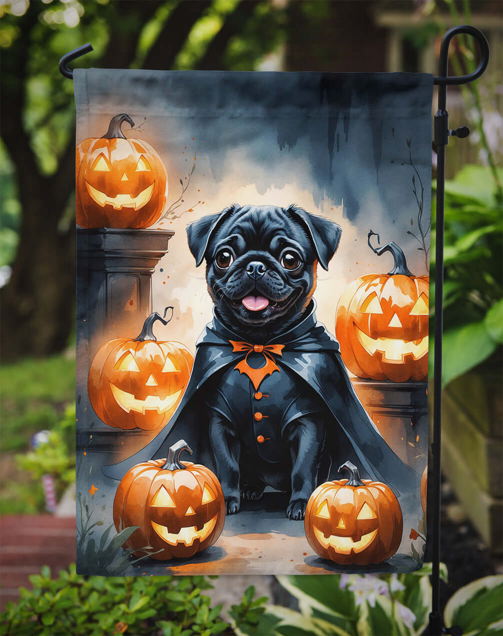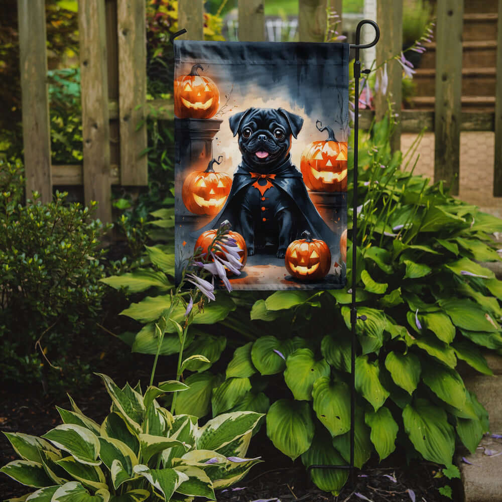 Black Pug Puppy Halloween Garden Flag