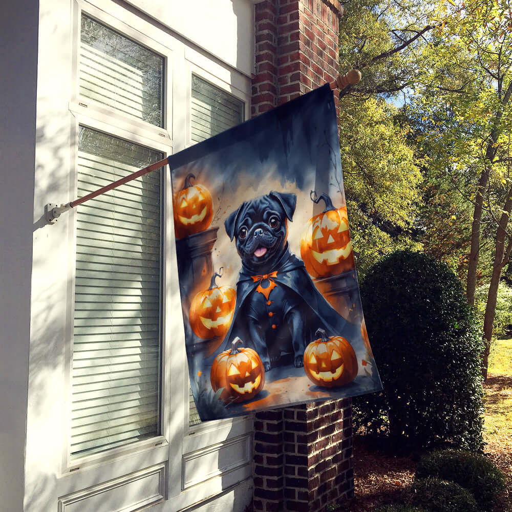Black Pug Puppy Halloween House Flag