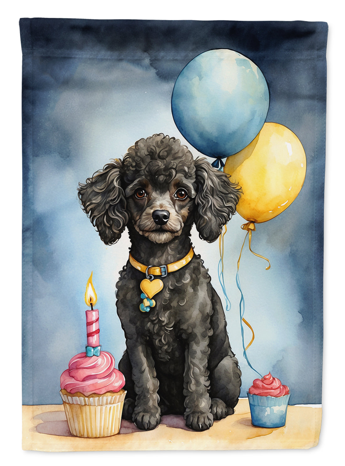 Black Toy Poodle Happy Birthday Garden Flag – Dog Birthday Cupcake Yard Decor with Balloons