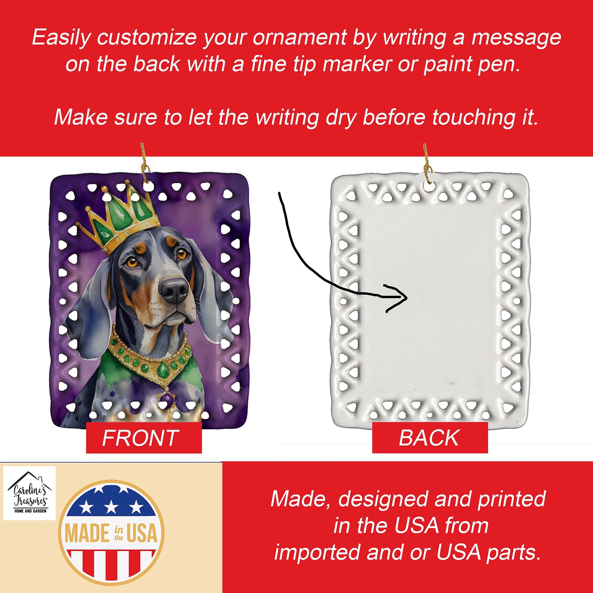 Bluetick Coonhound King of Mardi Gras Porcelain Ornament