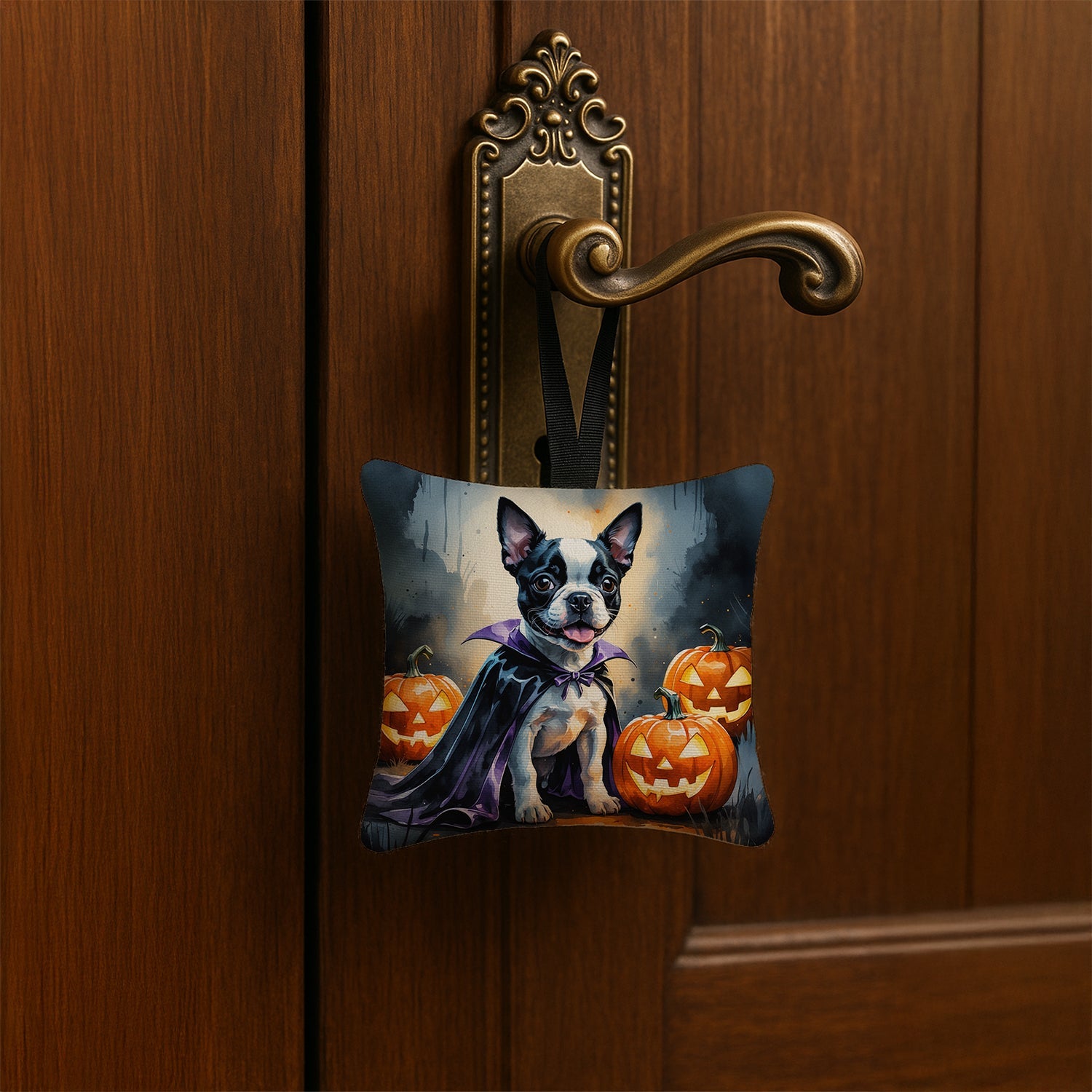 Mini Hanging Pillow Ornament 3.5 × 3.5 featuring breed specific Boston Terrier artwork. Celebrate Halloween with this Halloween Pillow Ornament. Caroline’s Treasures Mini Hanging Pillow Ornament approximately 3.5 inches by 3.5 inches. Add a pop of personality to any space with our collectible fabric cushion, proudly Made in the USA. Perfect for doorknobs, cabinet pulls, kitchen hooks, Easter trees, Christmas trees, rear-view mirrors and more, this petite pillow transforms even the smallest corner into a statement of style. USA Craftsmanship: Sewn, stuffed and printed in Alabama for quality you can feel while supporting American jobs. Collect them all - mix and match Boston Terrier Christmas, Patriotic Stars and Stripes, Easter Pastels, Valentine Hearts, Thanksgiving Harvest and more to celebrate every season in signature Caroline’s Treasures style.