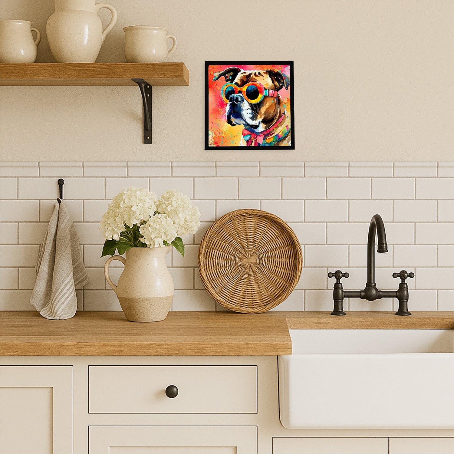 Framed Metal Print featuring breed specific Boxer artwork. Looking for wall art that’s stylish, safe, and made to last? Our 8x8 Framed Metal Prints are designed with modern living in mind. Each piece features original artwork printed on durable aluminum, set in a sleek frame that measures 3/4 inch deep for a clean, contemporary finish. Unlike glass prints, these are lightweight, shatter-free, and family-safe. Perfect for kitchens, bathrooms, or covered porches where traditional décor might not hold up. The built-in sawtooth hanger molded into the back makes it easy to hang right out of the box—just use your own nails or screws. Cleaning is simple too: a quick wipe with a damp cloth and mild soap keeps your artwork looking vibrant. Proudly made in Alabama, every print supports our community of artists while adding personality and charm to your home.