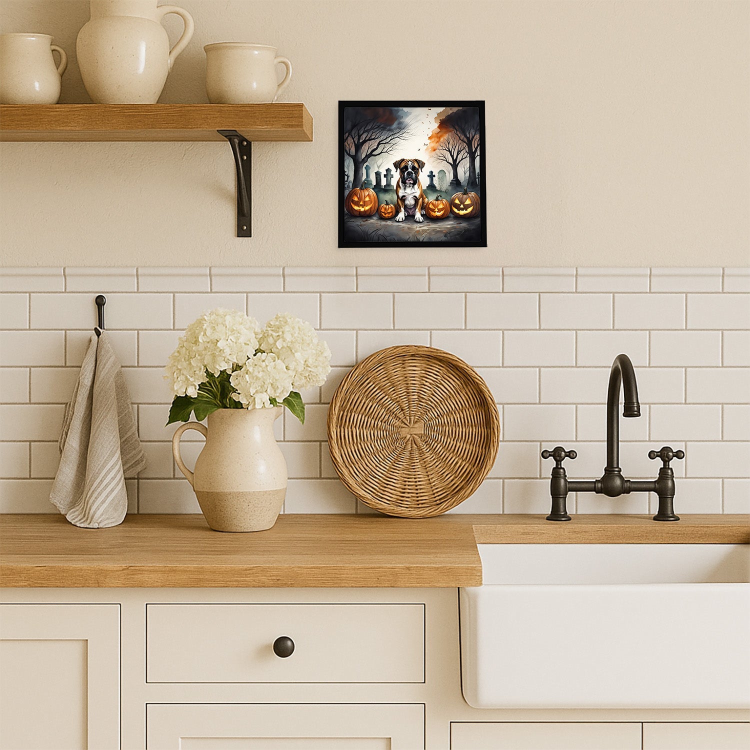 Framed Metal Print featuring breed specific Boxer artwork. Celebrate Halloween with this Halloween Framed Metal Print. Looking for wall art that’s stylish, safe, and made to last? Our 8x8 Framed Metal Prints are designed with modern living in mind. Each piece features original artwork printed on durable aluminum, set in a sleek frame that measures 3/4 inch deep for a clean, contemporary finish. Unlike glass prints, these are lightweight, shatter-free, and family-safe. Perfect for kitchens, bathrooms, or covered porches where traditional décor might not hold up. The built-in sawtooth hanger molded into the back makes it easy to hang right out of the box—just use your own nails or screws. Cleaning is simple too: a quick wipe with a damp cloth and mild soap keeps your artwork looking vibrant. Proudly made in Alabama, every print supports our community of artists while adding personality and charm to your home.