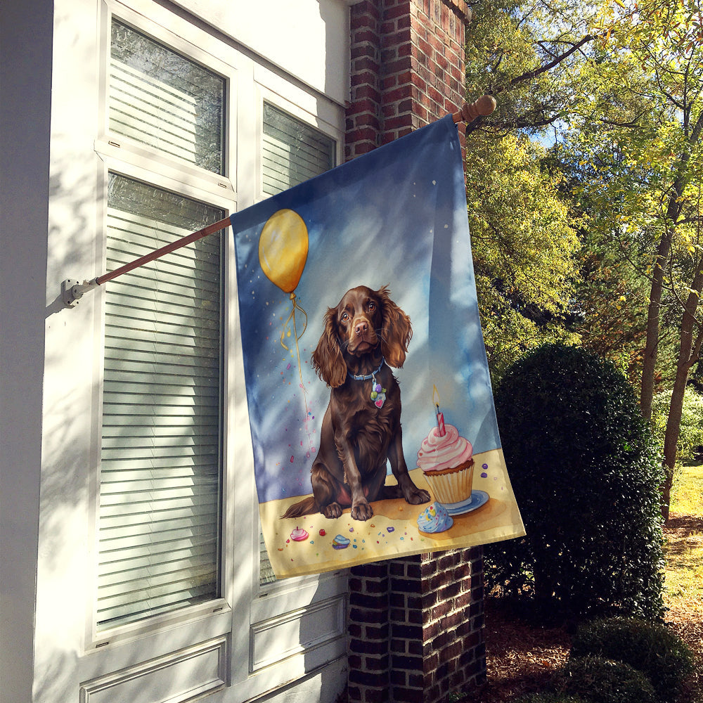 House Flag featuring breed specific Boykin Spaniel artwork. Celebrate Birthday with this Birthday Large Flag. Presenting our Heavy Duty Polyester House Size Decorative Sleeve Pole Flag, a vibrant addition to enhance the aesthetic appeal of your home. This large decorative flag, measuring approximately 28 x 40 inches, offers ample coverage and visibility. Each flag is meticulously sewn and made individually, ensuring a unique piece that may slightly vary in size. It's a sleeve pole flag, designed to fit a standard decorative flag pole effortlessly. Please note that the flag pole and bracket are not included and should be purchased separately. What sets our flag apart is its dual-sided print. The design is mirrored on both sides of the fabric, allowing for uniform visibility regardless of the angle. Printed in full color, our flag showcases vibrant hues that truly stand out. To ensure lasting vibrancy and durability, the dyes are heat-set into the fabric. This ensures your flag remains bright and captivating through various weather conditions. Elevate the look of your home with our Heavy Duty Polyester House Size Decorative Sleeve Pole Flag!