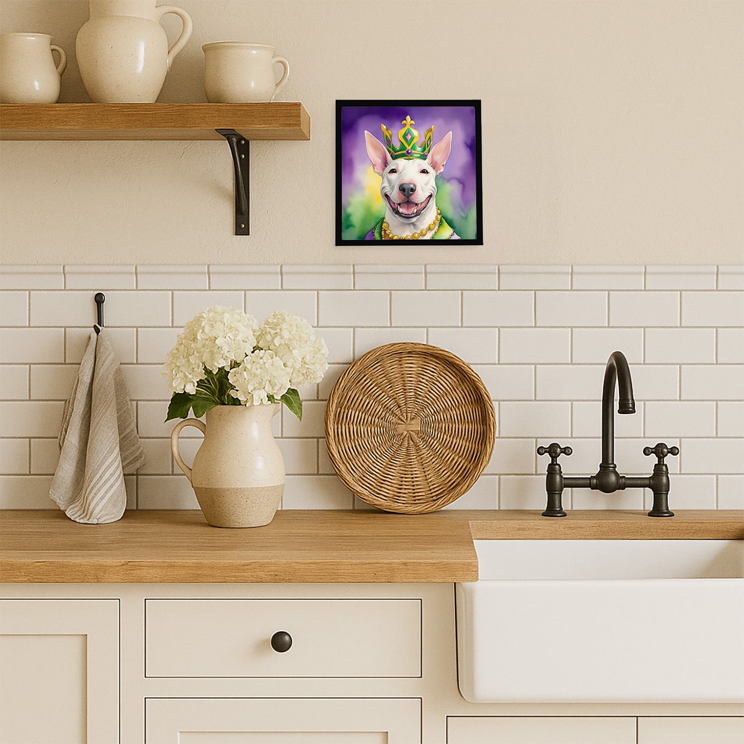 Framed Metal Print featuring breed specific Bull Terrier artwork. Celebrate Mardi Gras with this Mardi Gras Framed Metal Print. Looking for wall art that’s stylish, safe, and made to last? Our 8x8 Framed Metal Prints are designed with modern living in mind. Each piece features original artwork printed on durable aluminum, set in a sleek frame that measures 3/4 inch deep for a clean, contemporary finish. Unlike glass prints, these are lightweight, shatter-free, and family-safe. Perfect for kitchens, bathrooms, or covered porches where traditional décor might not hold up. The built-in sawtooth hanger molded into the back makes it easy to hang right out of the box—just use your own nails or screws. Cleaning is simple too: a quick wipe with a damp cloth and mild soap keeps your artwork looking vibrant. Proudly made in Alabama, every print supports our community of artists while adding personality and charm to your home.