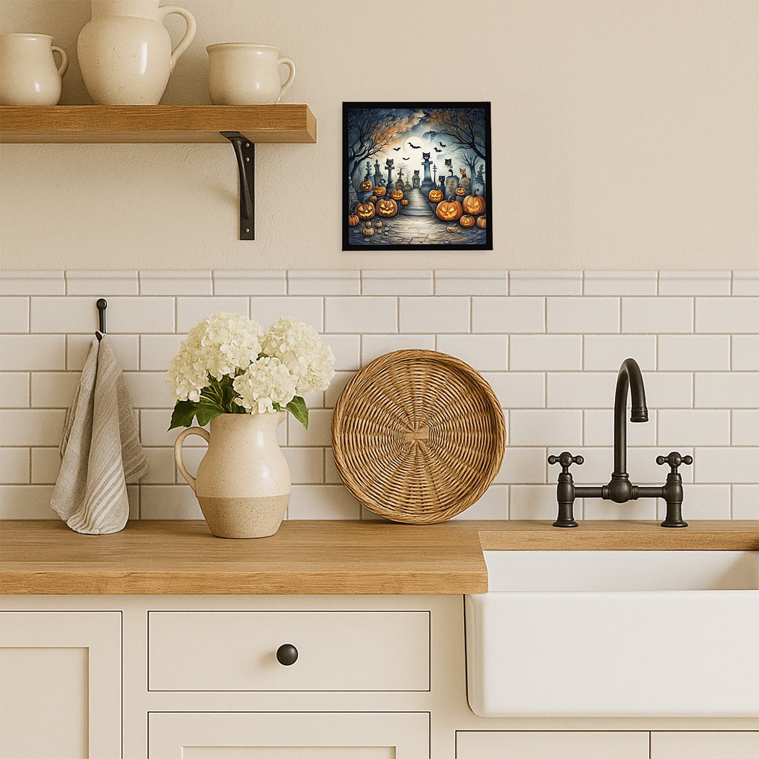 Celebrate Halloween with this Halloween Framed Metal Print. Looking for wall art that’s stylish, safe, and made to last? Our 8x8 Framed Metal Prints are designed with modern living in mind. Each piece features original artwork printed on durable aluminum, set in a sleek frame that measures 3/4 inch deep for a clean, contemporary finish. Unlike glass prints, these are lightweight, shatter-free, and family-safe. Perfect for kitchens, bathrooms, or covered porches where traditional décor might not hold up. The built-in sawtooth hanger molded into the back makes it easy to hang right out of the box—just use your own nails or screws. Cleaning is simple too: a quick wipe with a damp cloth and mild soap keeps your artwork looking vibrant. Proudly made in Alabama, every print supports our community of artists while adding personality and charm to your home.