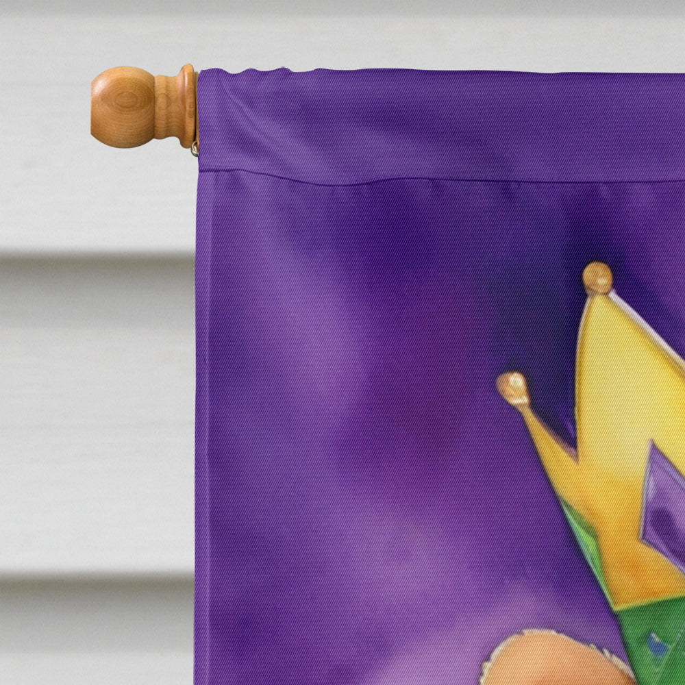 Decorate your space with our Mardi Gras Chow Chow artwork on a Large Flag. Presenting our Heavy Duty Polyester House Size Decorative Sleeve Pole Flag, a vibrant addition to enhance the aesthetic appeal of your home. This large decorative flag, measuring approximately 28 x 40 inches, offers ample coverage and visibility. Each flag is meticulously sewn and made individually, ensuring a unique piece that may slightly vary in size. It's a sleeve pole flag, designed to fit a standard decorative flag pole effortlessly. Please note that the flag pole and bracket are not included and should be purchased separately. What sets our flag apart is its dual-sided print. The design is mirrored on both sides of the fabric, allowing for uniform visibility regardless of the angle. Printed in full color, our flag showcases vibrant hues that truly stand out. To ensure lasting vibrancy and durability, the dyes are heat-set into the fabric. This ensures your flag remains bright and captivating through various weather conditions. Elevate the look of your home with our Heavy Duty Polyester House Size Decorative Sleeve Pole Flag!