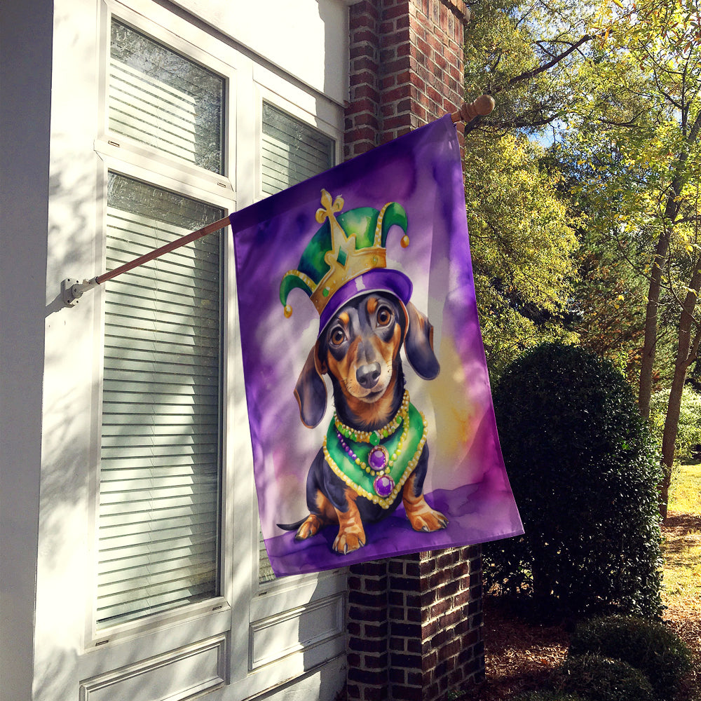 Decorate your space with our Mardi Gras Dachshund artwork on a Large Flag. Presenting our Heavy Duty Polyester House Size Decorative Sleeve Pole Flag, a vibrant addition to enhance the aesthetic appeal of your home. This large decorative flag, measuring approximately 28 x 40 inches, offers ample coverage and visibility. Each flag is meticulously sewn and made individually, ensuring a unique piece that may slightly vary in size. It's a sleeve pole flag, designed to fit a standard decorative flag pole effortlessly. Please note that the flag pole and bracket are not included and should be purchased separately. What sets our flag apart is its dual-sided print. The design is mirrored on both sides of the fabric, allowing for uniform visibility regardless of the angle. Printed in full color, our flag showcases vibrant hues that truly stand out. To ensure lasting vibrancy and durability, the dyes are heat-set into the fabric. This ensures your flag remains bright and captivating through various weather conditions. Elevate the look of your home with our Heavy Duty Polyester House Size Decorative Sleeve Pole Flag!