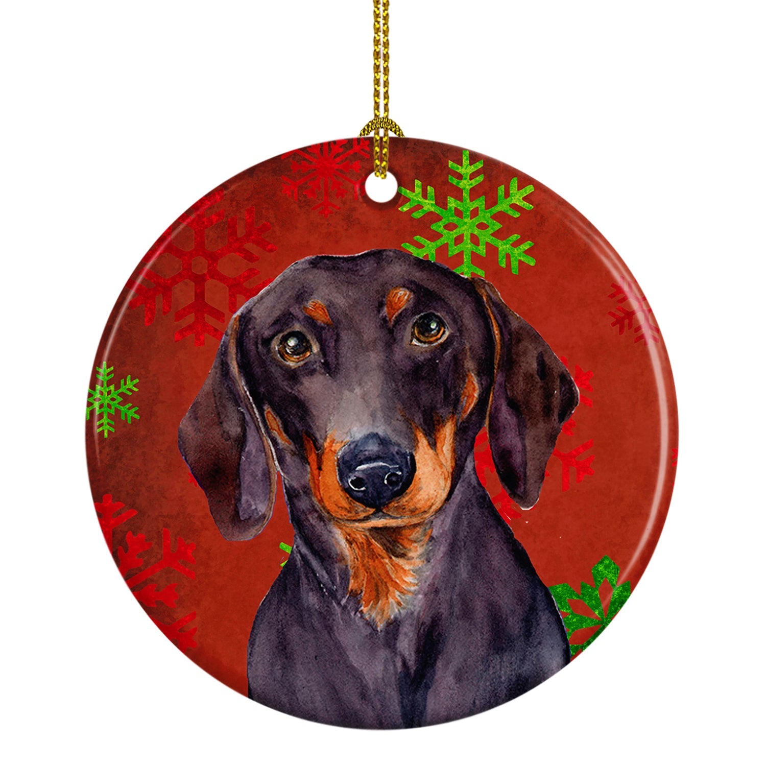 Dachshund Red Snowflake Holiday Christmas Ornament - Round Ceramic Ornament – Artist-Designed Keepsake Decoration LH9313
