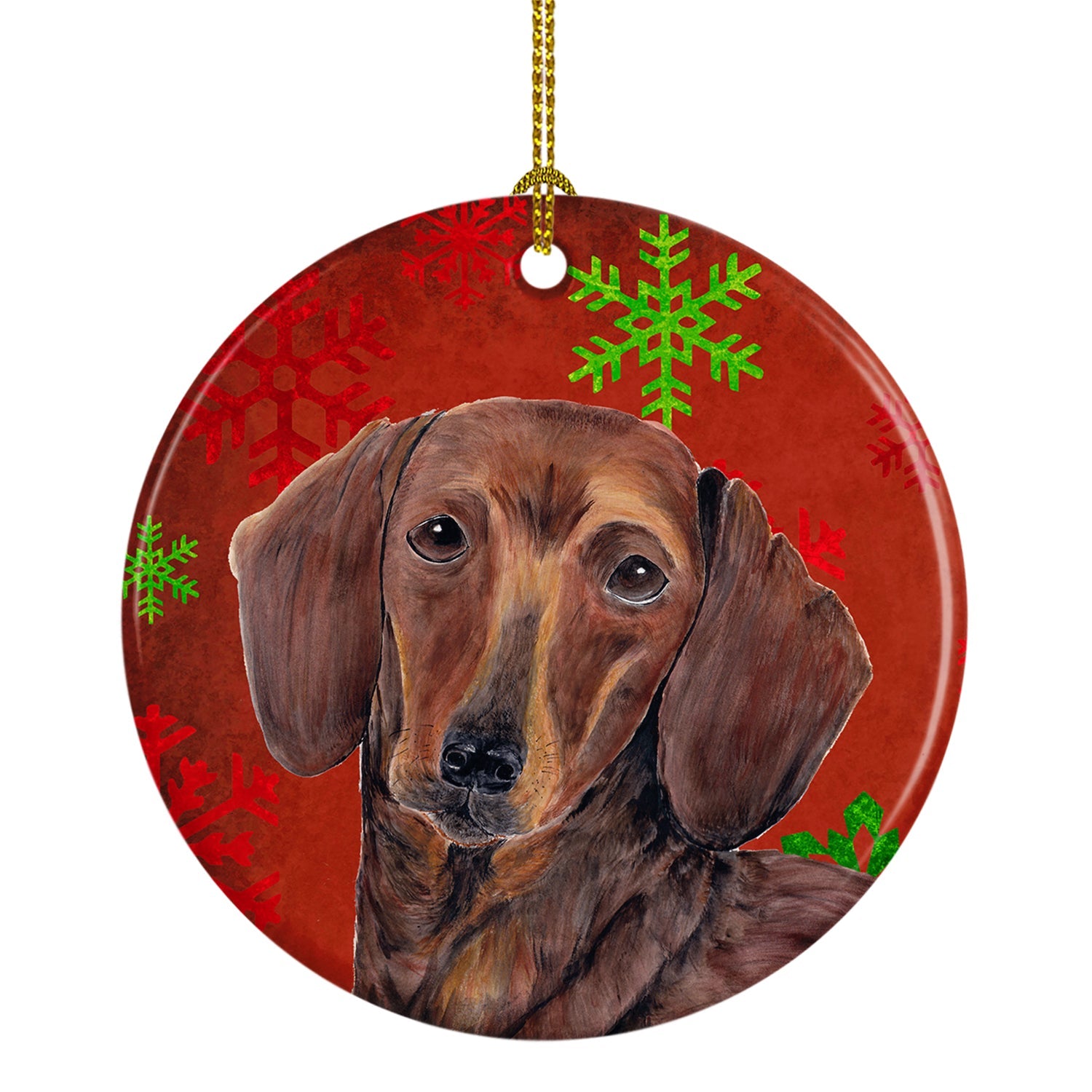 Dachshund Red Snowflakes Holiday Christmas Ornament - Round Ceramic Ornament – Artist-Designed Keepsake Decoration SC9408